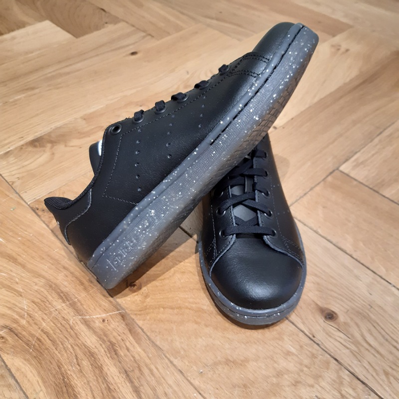Nouvel stan smith en cuir noir et semelle pailleté . Modéle lacets ou elastique du 22 au 27 , et lacet du 28 au 38 2/3