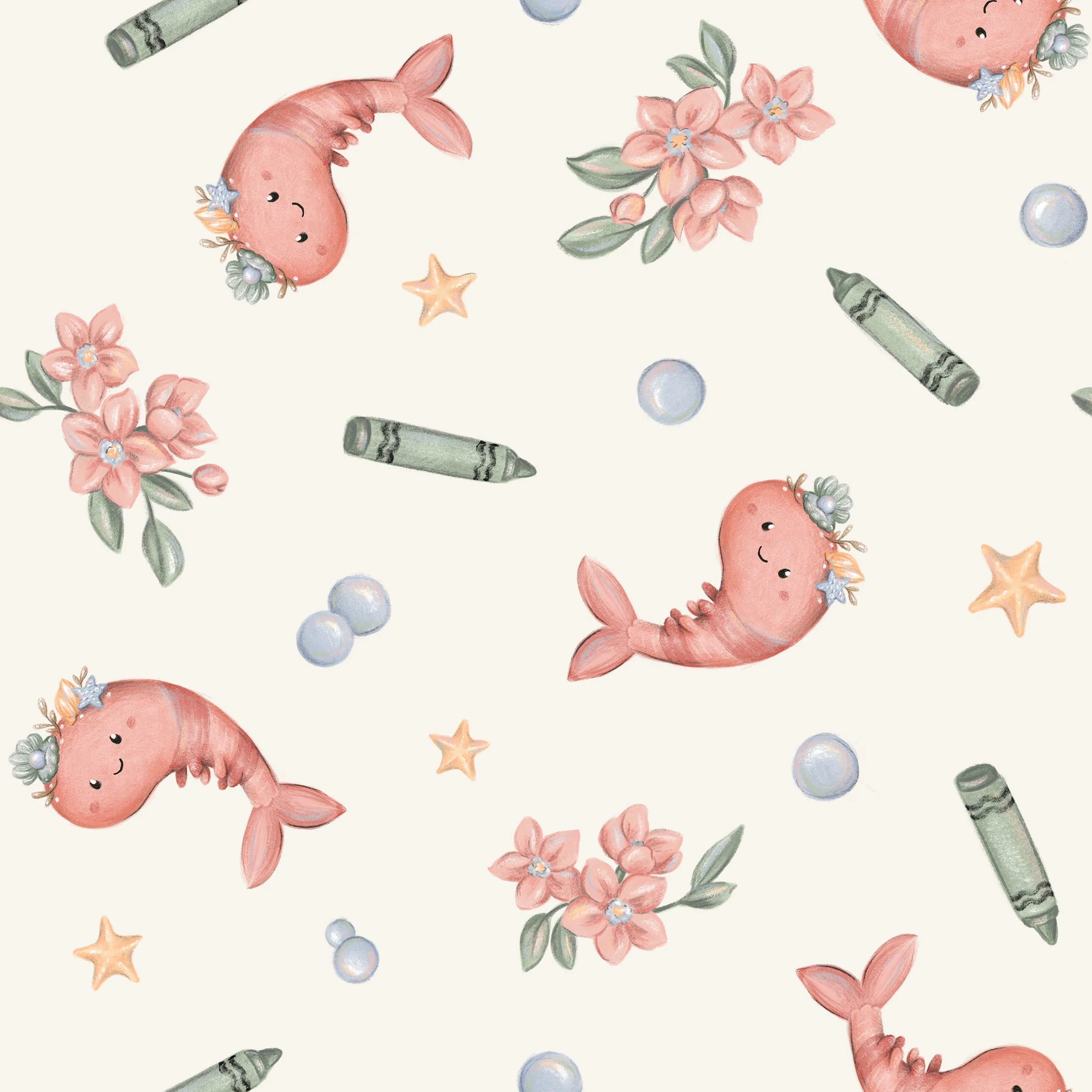 Ce petit bandana à motifs de crevettes et caryons de cire est réversible rayé rose s’agence avec toute la collection !
