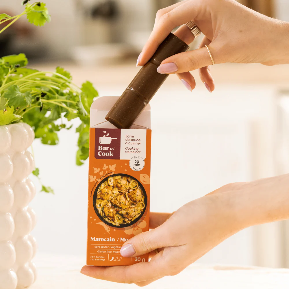Les barres de sauce à cuisiner sont des sauces concentrées faites de 3 ingrédients naturels : beurre de cacao, légumes bio et épices bio. Vous découvrirez de délicieuses saveurs de cumin, citron confit, paprika, curcuma avec la barre de sauce Marocaine. Une barre de sauce qui conviendra aux amateurs de cuisine épicée.