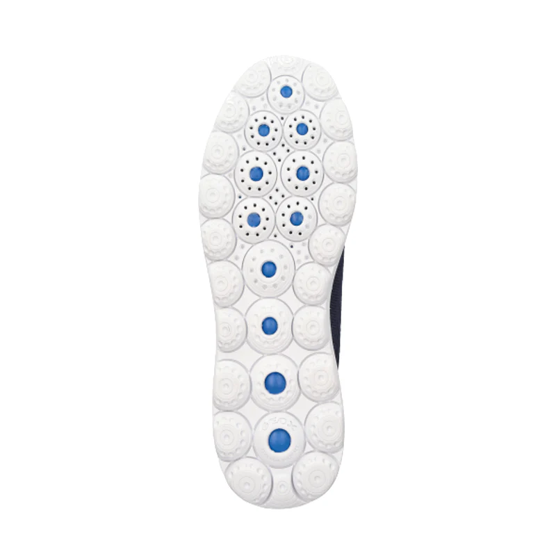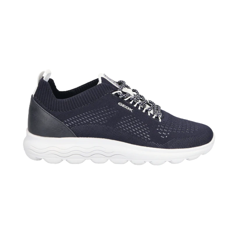Les sneakers basses Spherica de Geox en couleur navy sont parfaitement adaptées pour les femmes actives, alliant style moderne et performance optimale avec un amorti et une respirabilité exceptionnels. Ces sneakers, avec leur semelle extérieure et tige en tissu à effet maille de couleur bleu marine, incarnent un style actif inimitable. Elles sont spécialement conçues pour absorber les chocs et les sollicitations du sol, offrant ainsi confort et soutien tout au long de la journée. Le système Zéro Shock intégré assure un amorti renforcé, tandis que leur conception légère et la fermeture à lacets garantissent un ajustement précis. La semelle intérieure amovible favorise une meilleure hygiène.