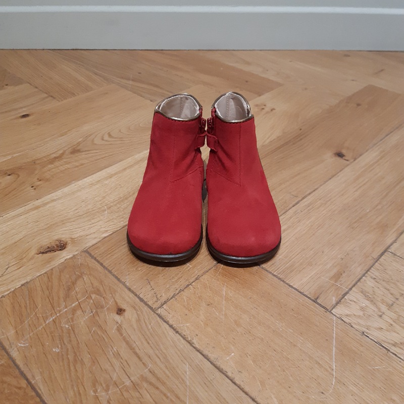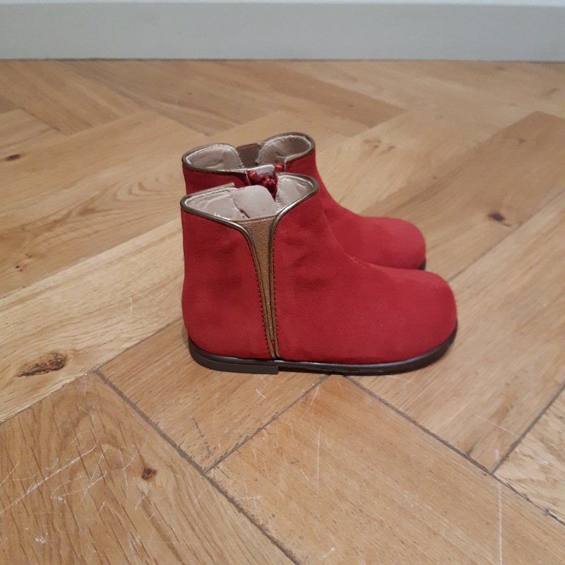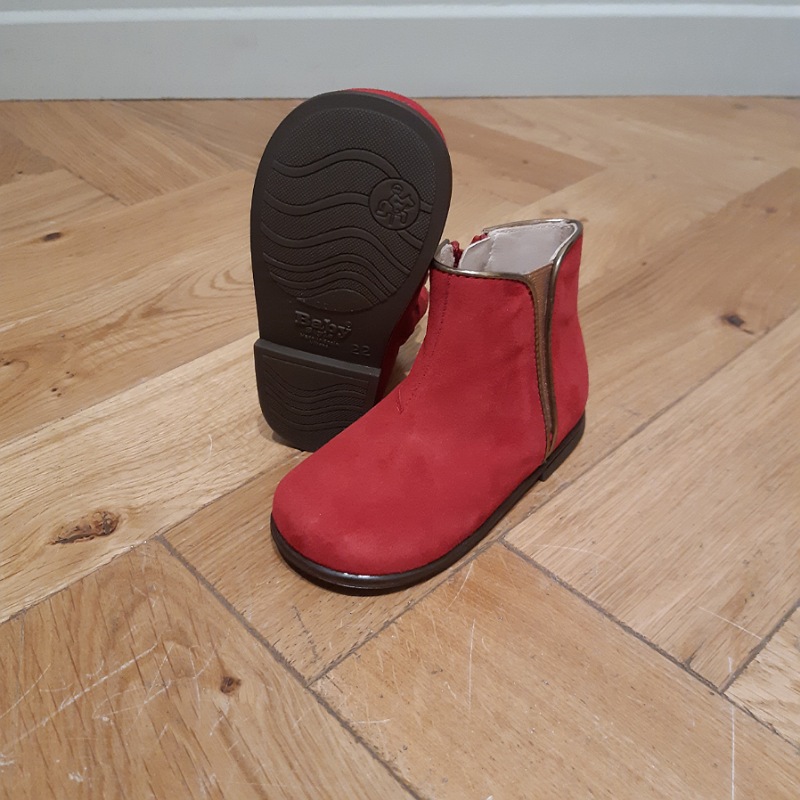 Jolie petite bottine au coloris rouge flamboyant ideal pieds ronds .intemporel et de toute saison . Nous vous conseillons de chausser ce modèle à des enfants aux pieds un peu » ronds » . Chausse normalement .