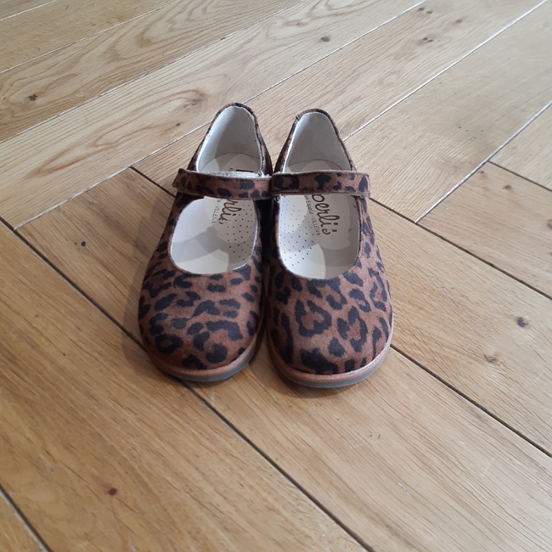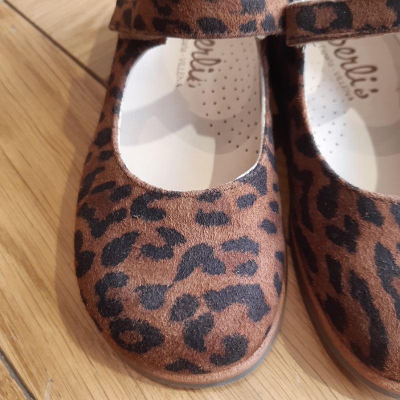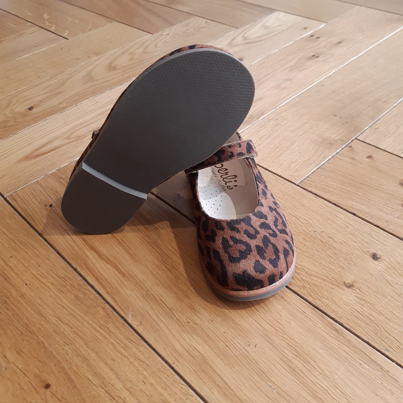 Jolie petite babys de chez beberlis . On adore le mélange des genres. Un grand classic dans un cuir effet leopard ! Effet garanti ! Facile à mettre grace à sa bride velcro. Semelle cautchouc Attention ce modéle chausse trés grand ( prendre une pointure de moins que celle de votre enfant ) Convient à tous type de pied sauf extra fin .