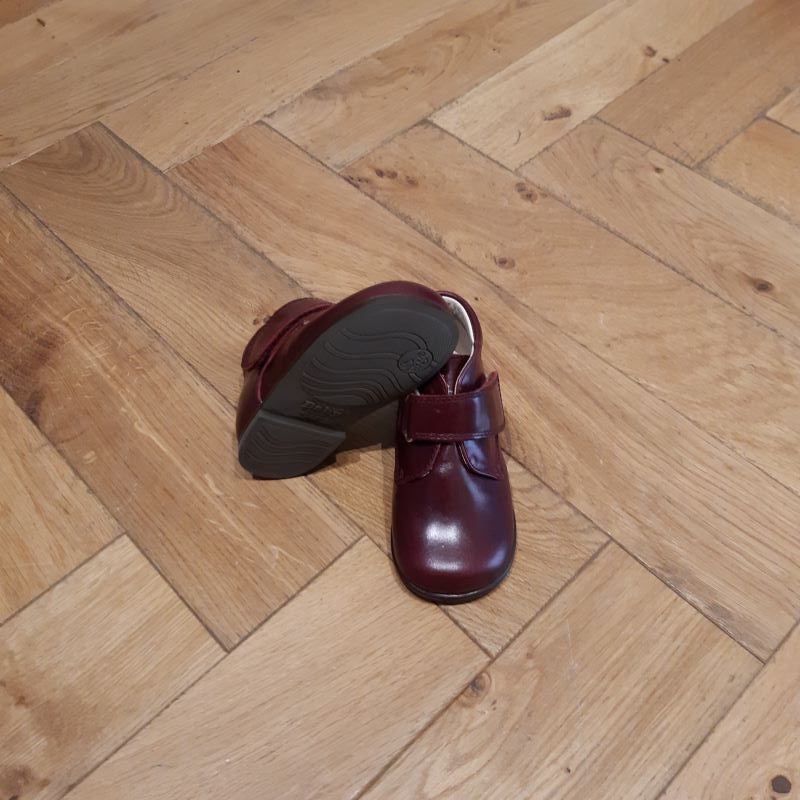 Jolie petit modéle premier pas de chez Beberlis ! Idéal pour les premiers pas acquis ou en cours d’ acquisitions, grâce à son contrefort et son bon maintien. Coloris bordeaux ultra tendance . Cuir extrêmement souple. Nous vous conseillons de chausser ce modèle à des enfants aux pieds un peu » ronds » . Chausse normalement .