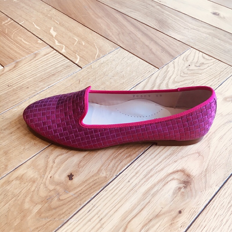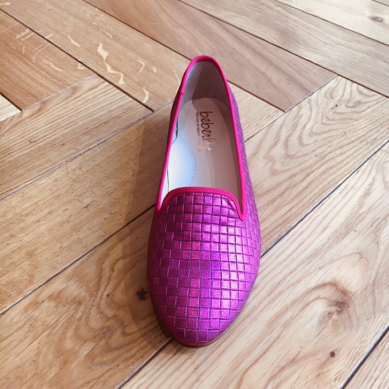 Jolie chaussure slippers de marque Beberlis . Modèle tout en cuir . Coloris vif et flatteur . Un classique revisité .