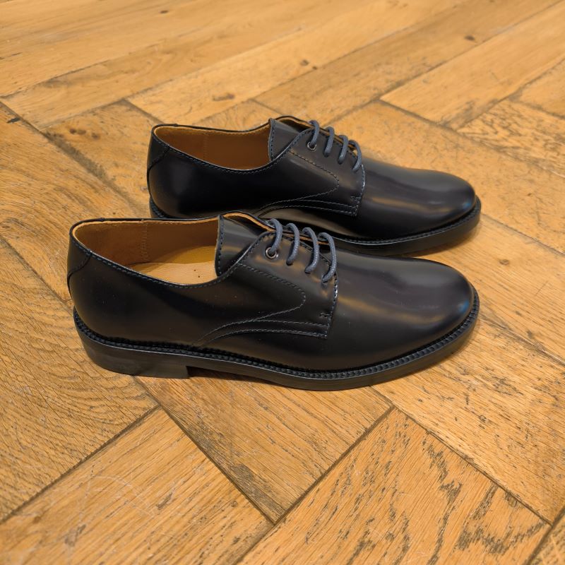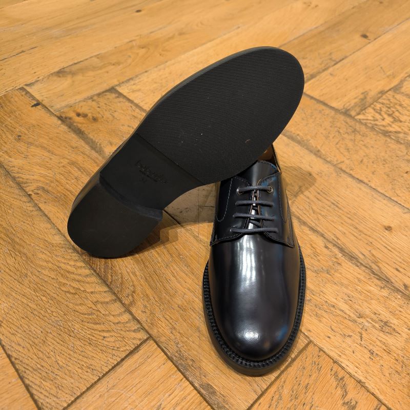 Superbe chaussure type derby tout en cuir , coloris marine trés foncé. Superbe cuir glacé, facile à entretenir et intemporel