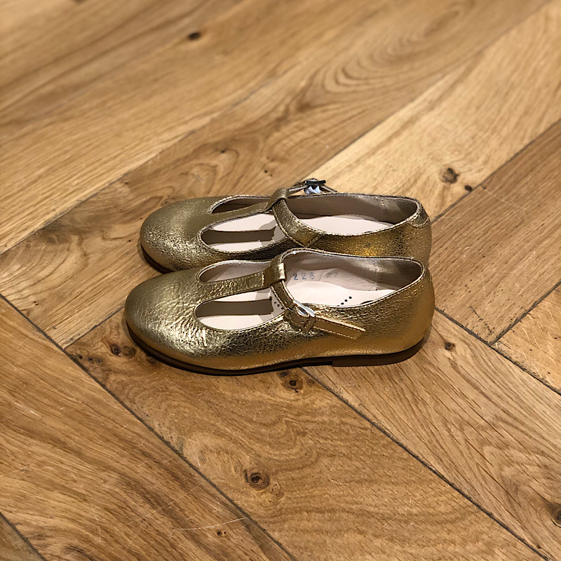 Jolie ballerine salomé or . Modéle idéale pour la mi saison et l’ été. La chaussure est doublé cuir . Fabriqué en espagne . Produit chic, classique, et indémodable . Modéle qui convient à des pieds fins . Produit idéales pour les jeunes filles et leurs mamans ! Chausse normalement.