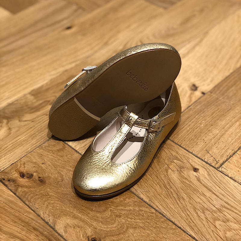 Beberlis marque espagnole authentique. Modèle tout en cuir . Jolie cuir or extérieur. Semelle en caoutchouc. Modéle idéale pour les jeunes filles et les mamans.