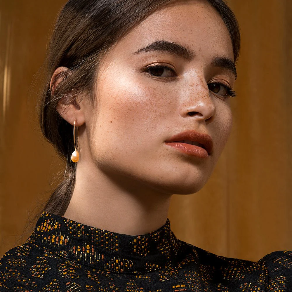 Personnalisez votre paire d’anneaux minimalistes avec une perle de culture d’eau douce de la couleur de votre choix : ivoire, abricot ou lavande