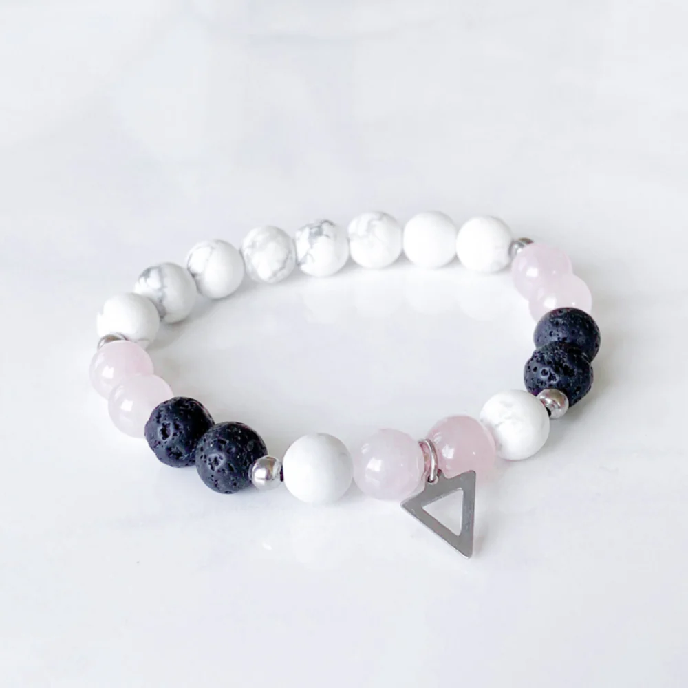 Informations supplémentaires : Le Quartz rose apportera un amour inconditionnel et une douceur à votre vie, tandis que la Howlite apaisera les tensions et le stress. Les pierres de lave noire quant à elles, vous donneront la force nécessaire pour surmonter les défis quotidiens, et sont en plus des diffuseurs d’huiles essentielles naturels.