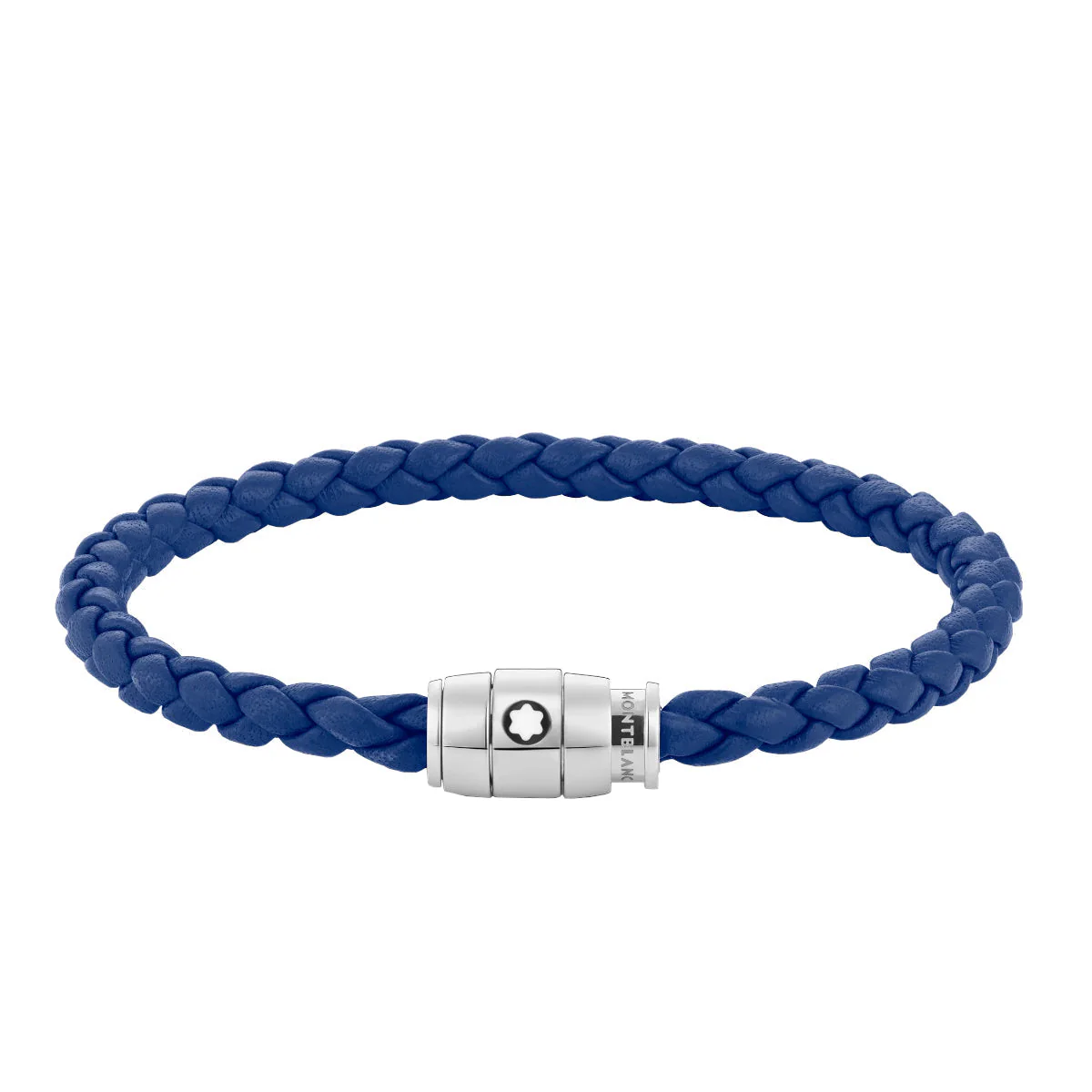 Ce bijou, tissé à partir de cuir rouge, est doté d’une boucle en acier inoxydable poli avec un anneau en acier rehaussé de l’emblème Montblanc.