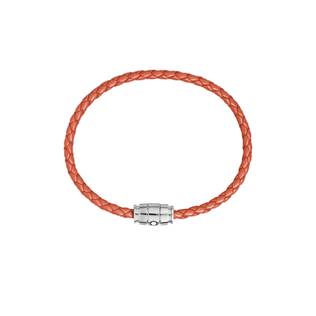 Ce bijou, tissé à partir de cuir cayenne, est doté d’une boucle en acier inoxydable poli rehaussée de l’emblème Montblanc.