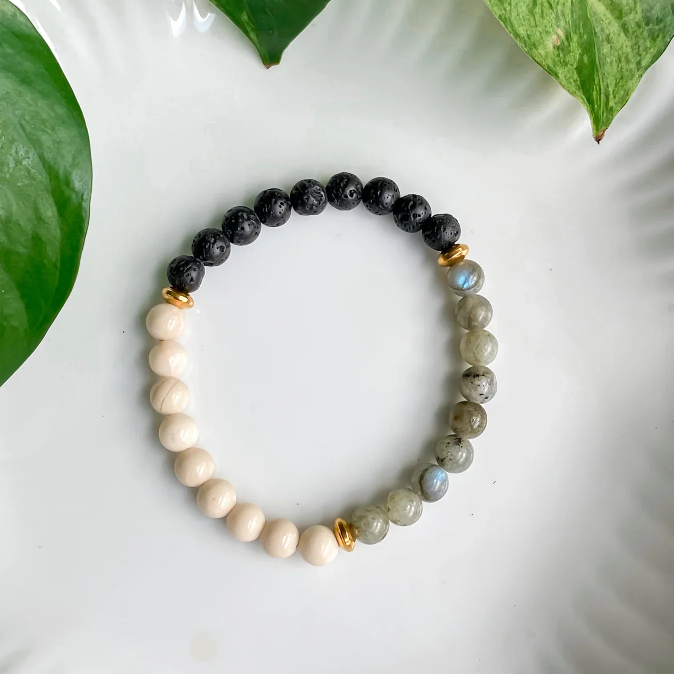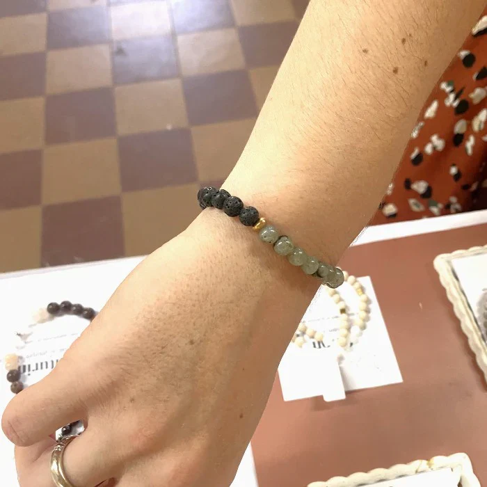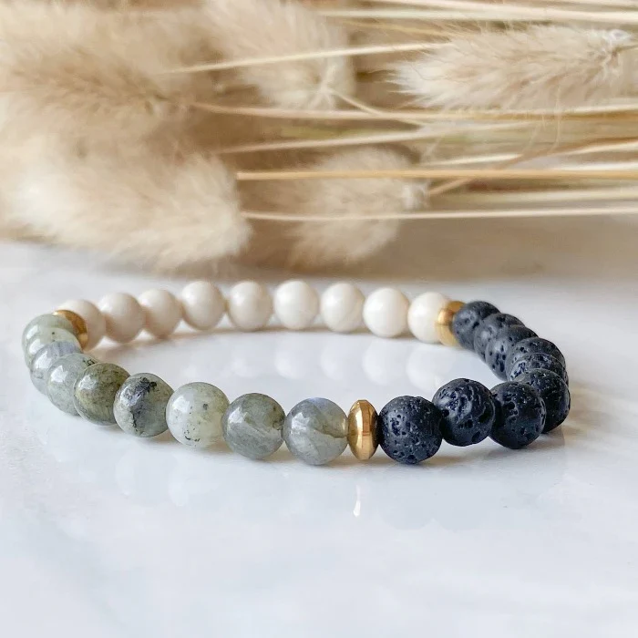 Les pierres de lave noire symbolisent la force intérieure et la résilience. Elles sont le reflet de ta détermination à surmonter les défis. La lave est également poreuse, ce qui signifie que tu peux l’utiliser comme un bracelet diffuseur d’huiles essentielles. Ajoute quelques gouttes de ton huile préférée et laisse sa douce fragrance t’envelopper toute la journée.