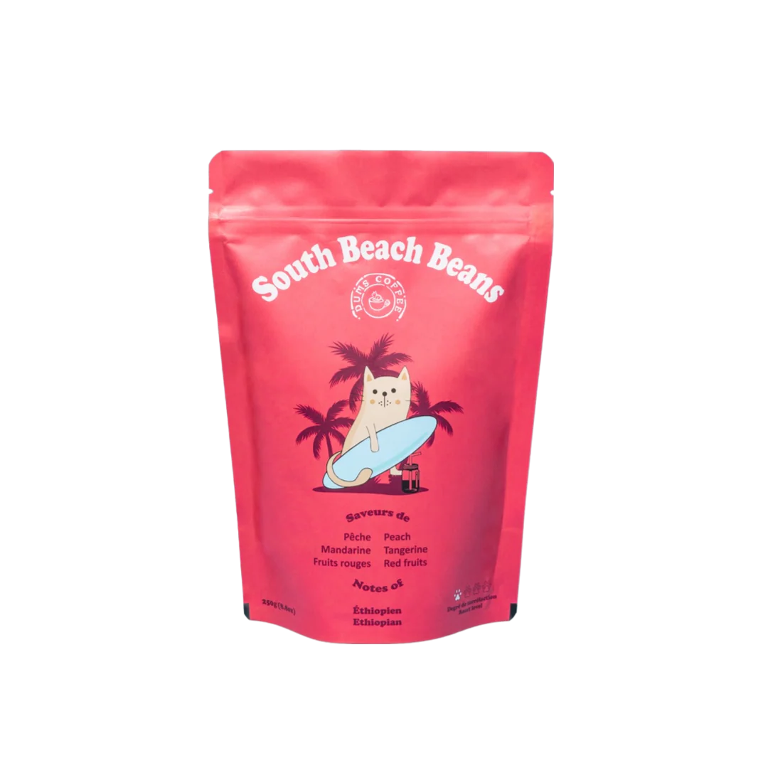 Découvrez notre surprenant café de spécialité micro-lot South Beach Beans. Ce délicieux café Éthiopien vous impressionnera par son goût unique de pêche, de mandarine et de fruits rouges. Faisant penser au thé, il est léger, frais, doux et très goûteux. Parfait pour une journée d’été, un matin ensoleillé, ou un « boost » d’énergie juste avant une activité physique. C’est unique et c’est délicieux!