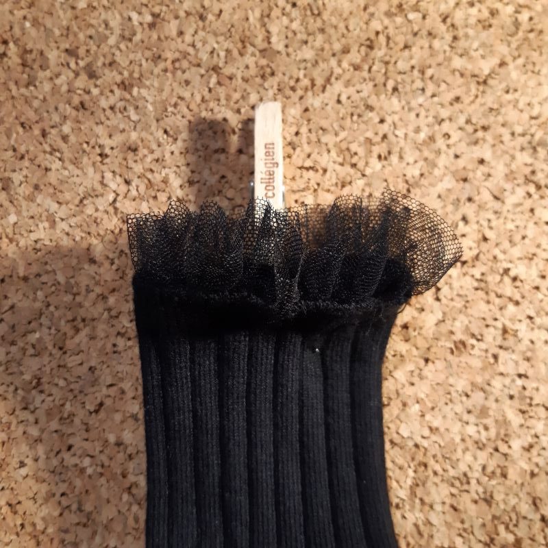 chaussette courte côtelé en coton égyptien longue fibre bord tulle dans le meme ton . Coloris noir