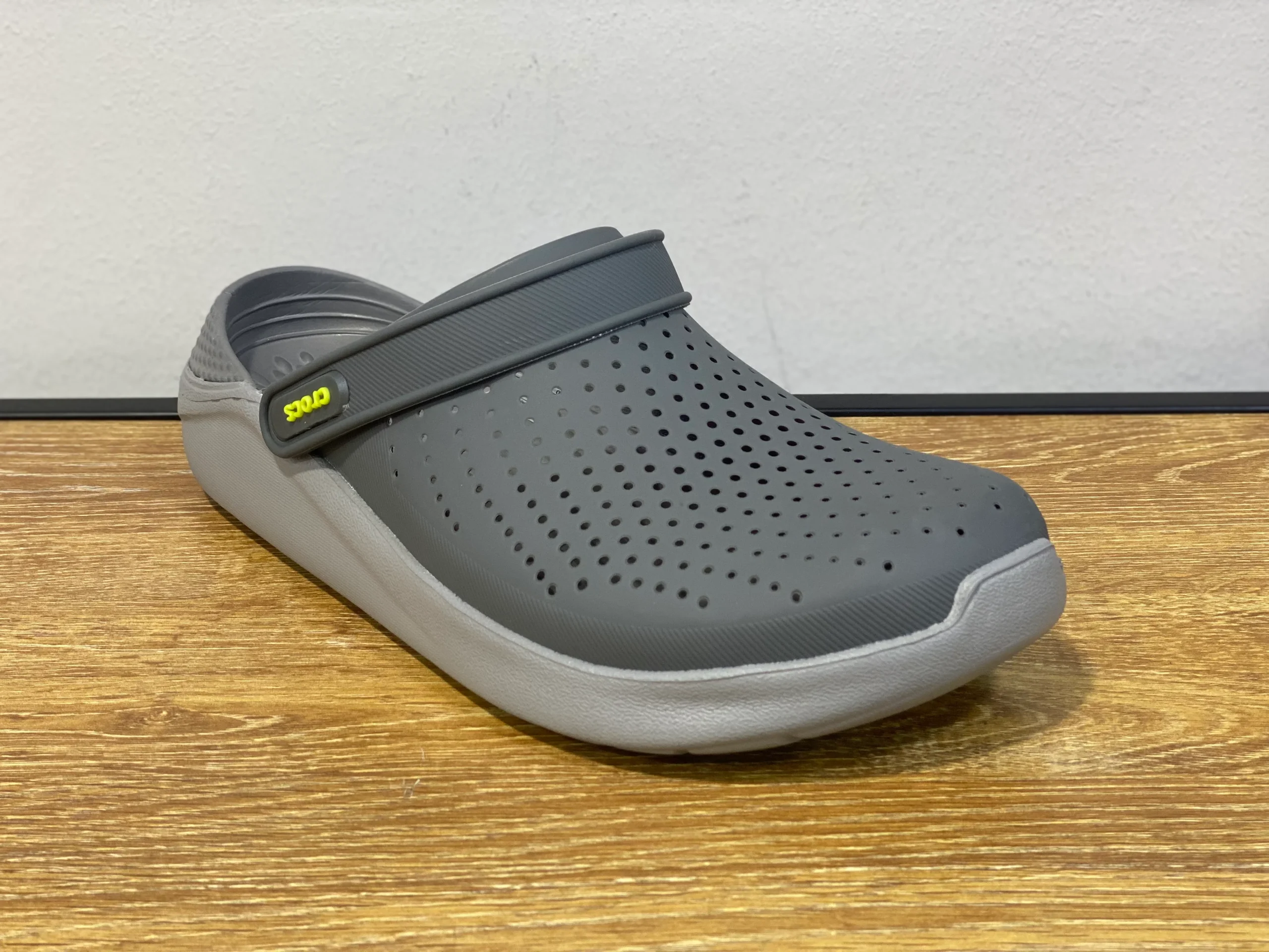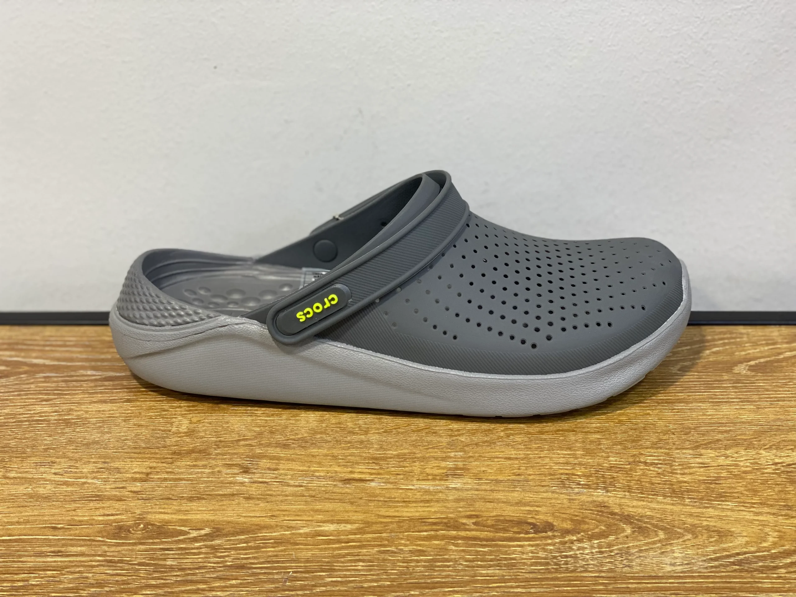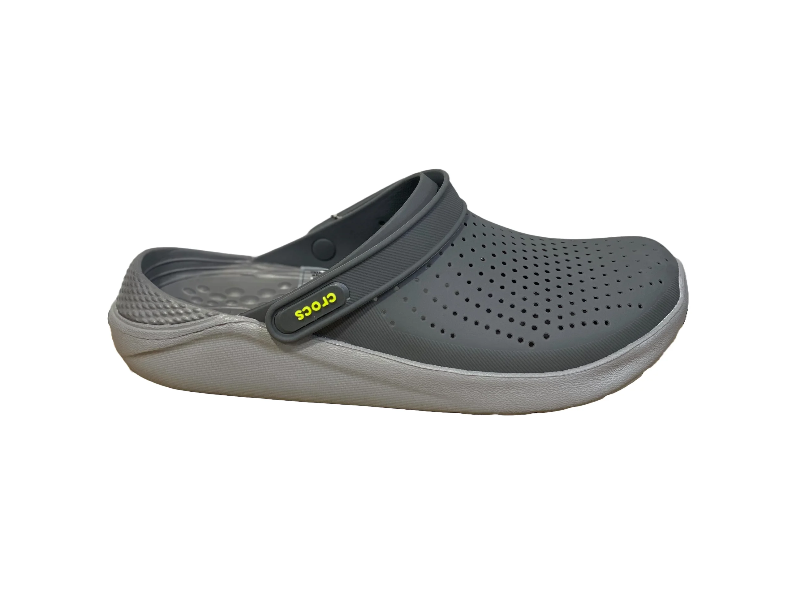 Soyez le premier à laisser votre avis sur “CROCS gris foncé et gris clair avec logo jaune”