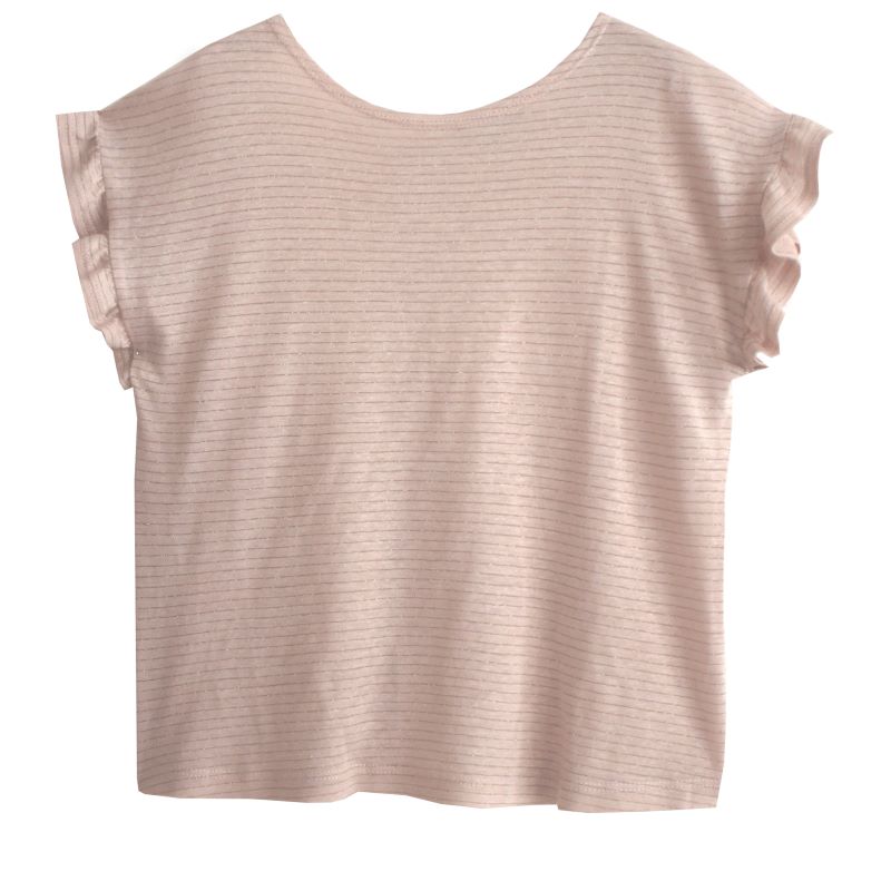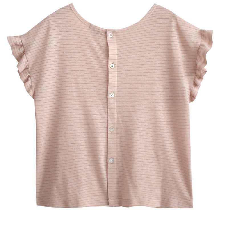 T.shirt fille sans manche , rose nude et rayure or. Ultra féminin. Encolure ronde . boutonné dans le dos. Matiére fluide et légére . (viscose)