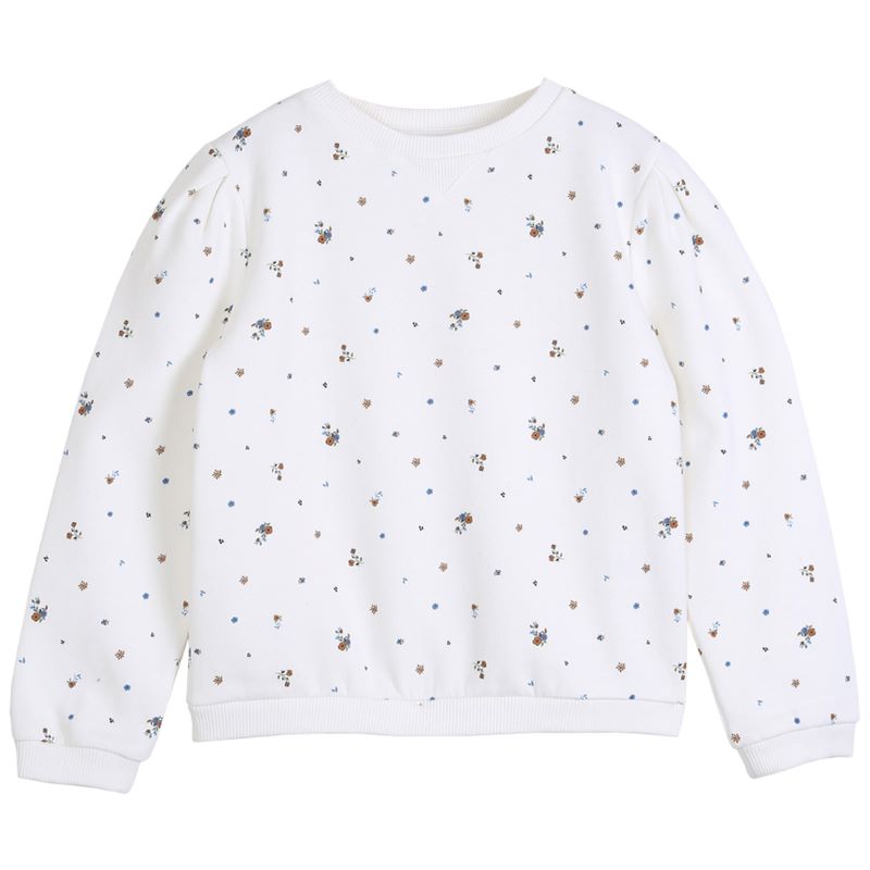 Sweatshirt en coton organique, petite fleur bleu et caramel sur fond écru . Emile et Ida Taille normalement .