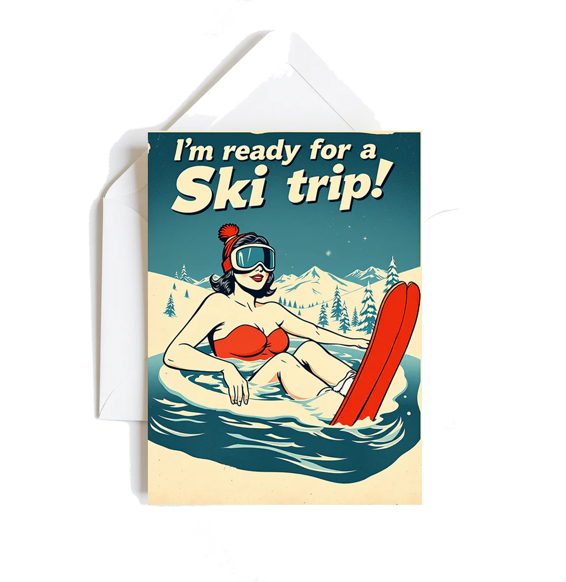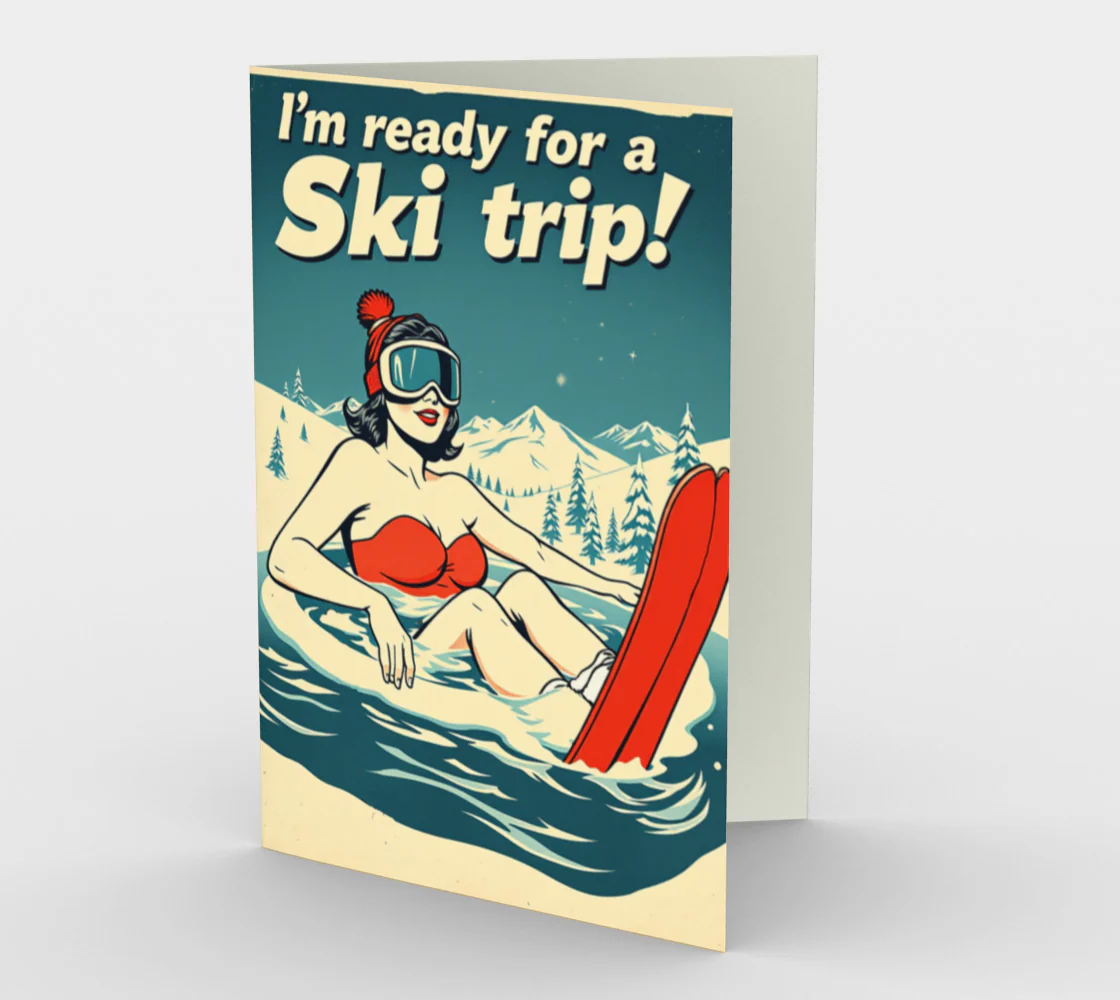 Carte de souhaits ‘Je suis prêt pour un voyage de ski’ carte vierge Ensemble de 3 cartes fabriquées à Montréal