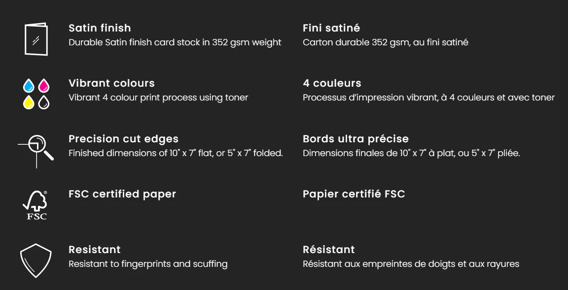 • Papier cartonné durable avec finition satinée d’un grammage de 352 g/m²