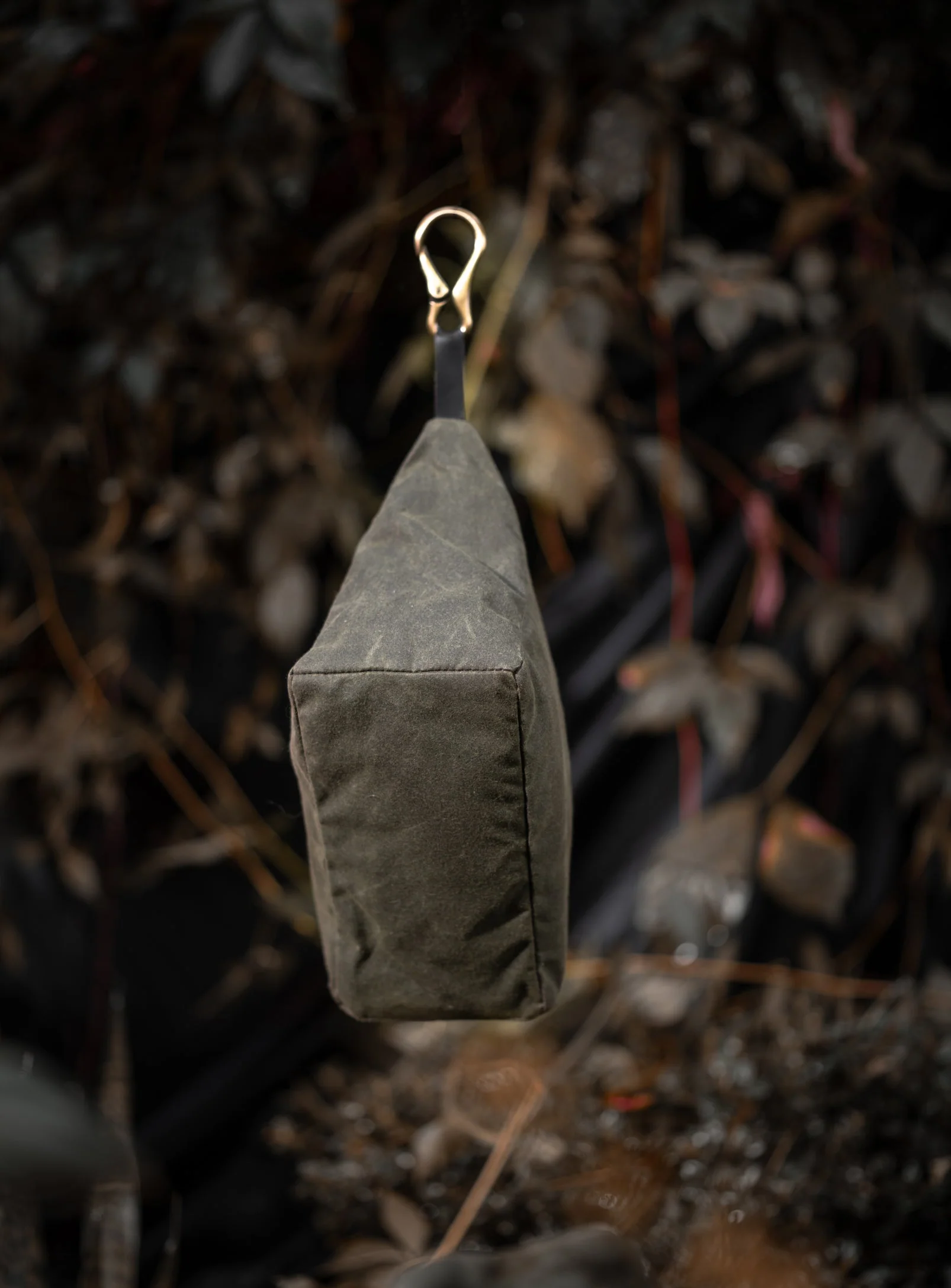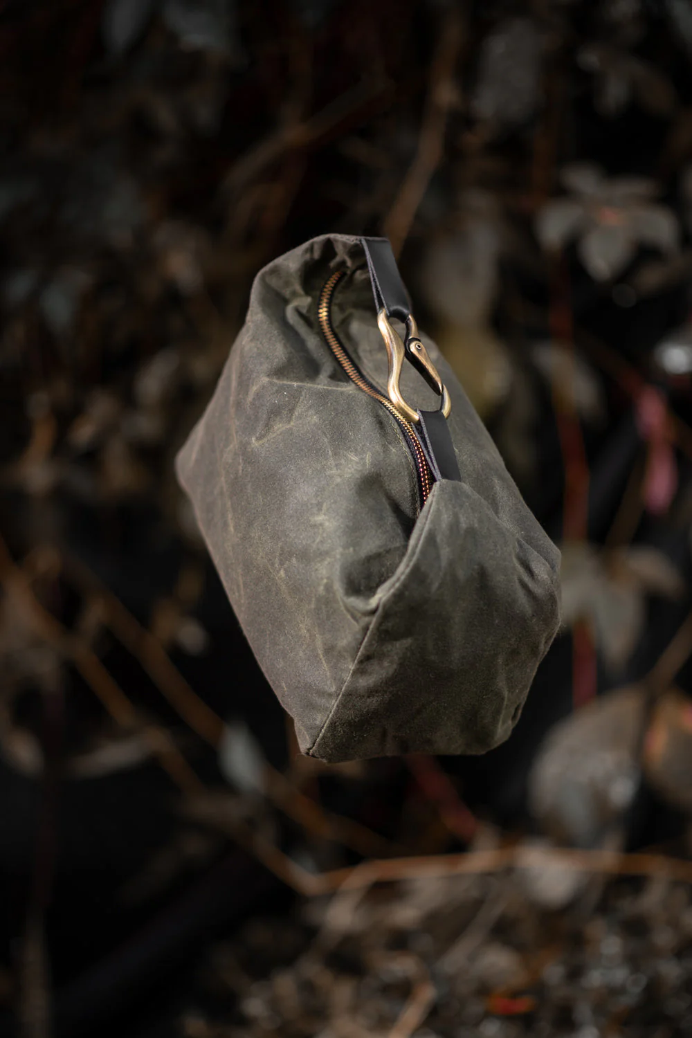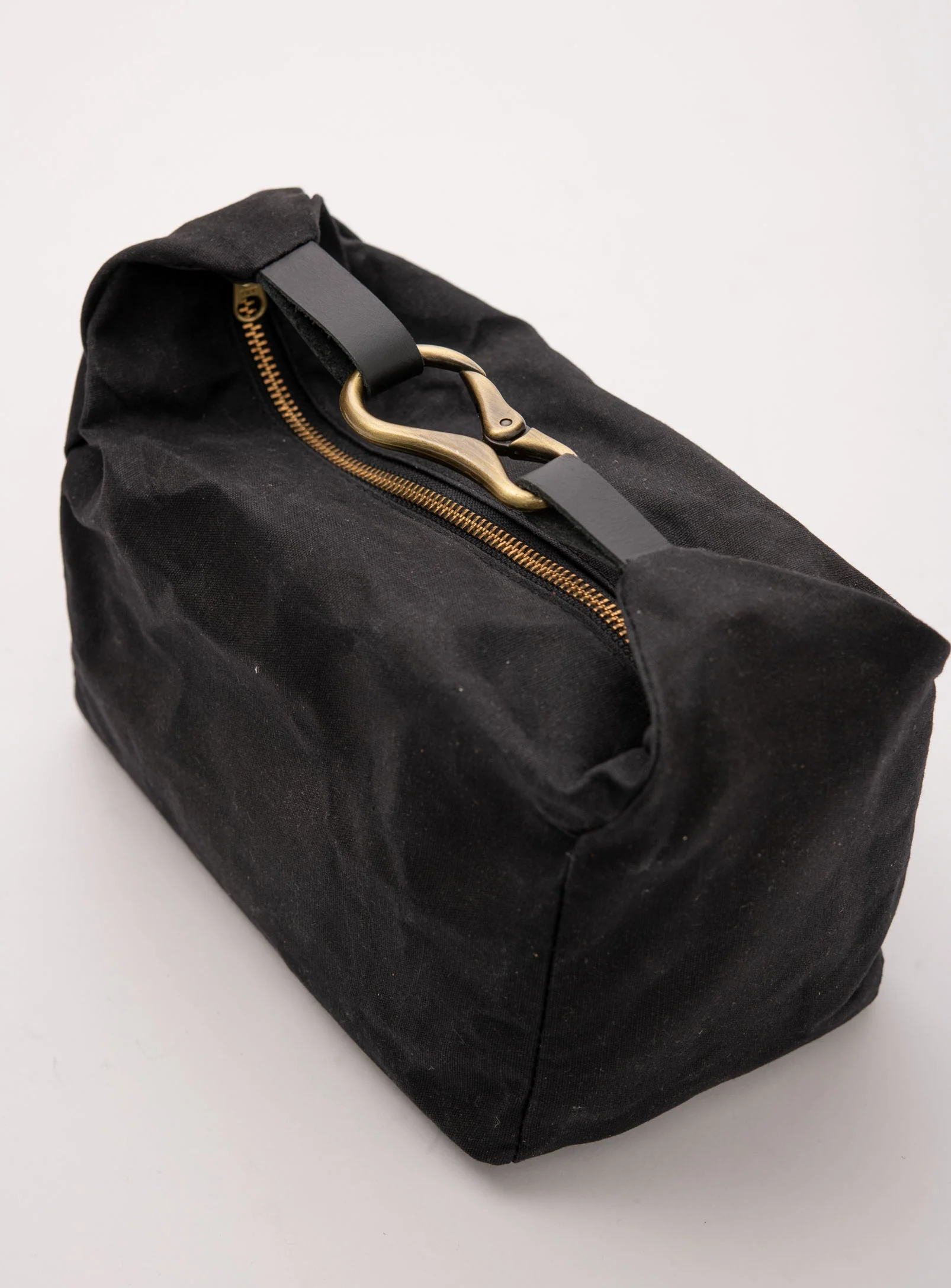 L’étui de voyage imperméable parfait en toile de coton ciré. Fabriqué à la main à Montréal, Canada avec des matériaux récupérés. Trousse à cosmétique, étui de voyage grand format.