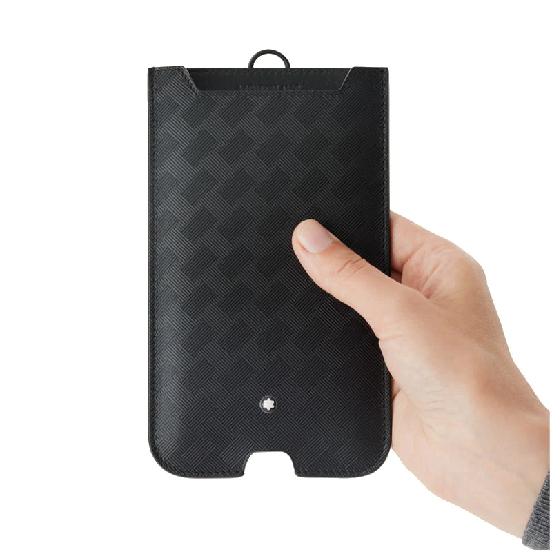 L’étui pour téléphone Montblanc Extreme 3.0 peut accueillir des smartphones jusqu’à 5,4″. Le cuir bovin pleine fleur embossé du motif Montblanc Extreme 3.0 confère à ce modèle un style incomparable souligné par les garnitures métalliques noires. Grâce à l’anneau situé au dos, l’étui pour téléphone s’attache à un crochet ou à une lanière tour de cou pour conserver votre smartphone à portée de main. Lanière tour de cou vendue séparément.