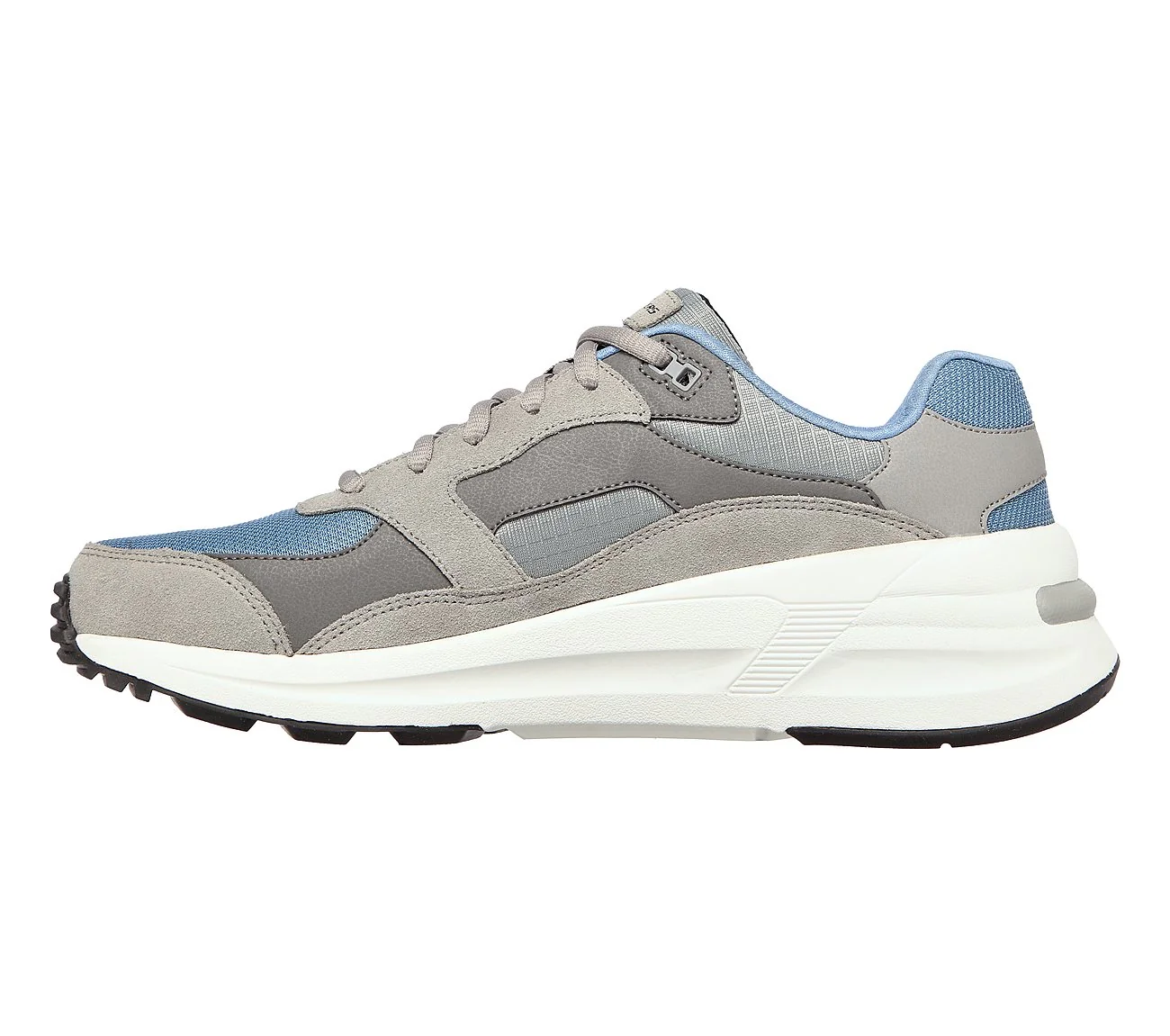 Le style sportif et le confort durable sont offerts dans la chaussure Skechers Global Jogger. Cette basket décontractée est dotée d’une tige en daim et en maille athlétique avec une semelle intérieure Air-Cooled Memory Foam® et une semelle extérieure de traction en caoutchouc Goodyear®.