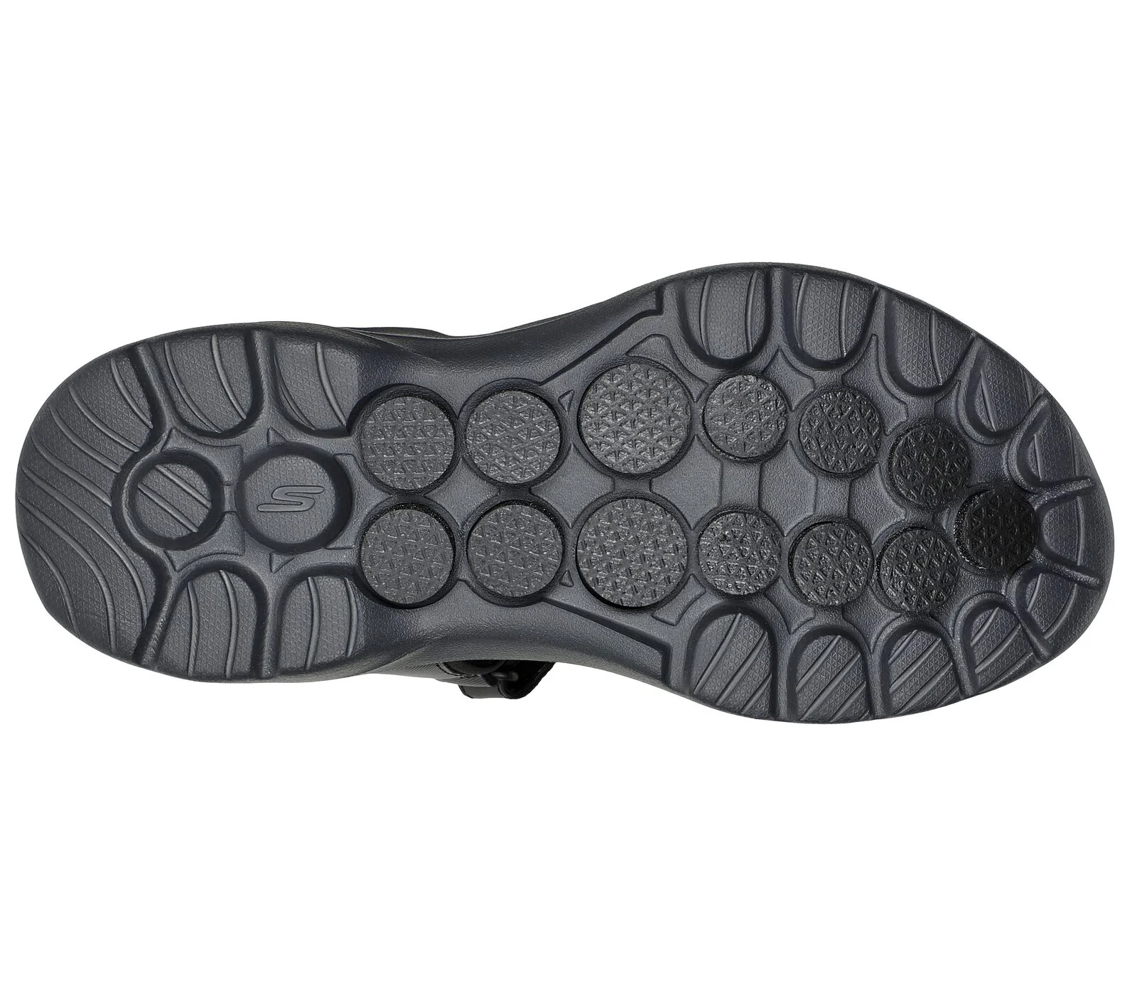 Le style par temps chaud bénéficie d’un confort amélioré avec la sandale Skechers GO WALK® 6. Cette sandale de style rivière comprend une tige synthétique avec des sangles réglables, une assise plantaire confortable Goga Mat® profilée, un amorti léger ULTRA GO® et Hyper Pillar Technology ™ pour un soutien accru.