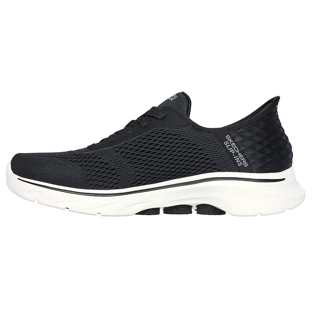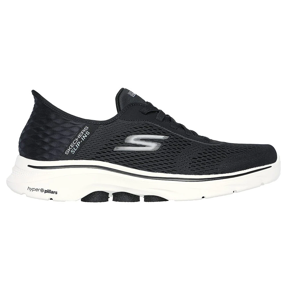Entrez dans un confort de marche et un amorti pratiques en portant Skechers Hands Free Slip-ins® : GO WALK 7™ – Free Hand 2. Conçu avec notre talon exclusif Heel Pillow™, ce style élégant dispose d’une tige en tricot extensible avec une semelle intérieure Skechers Air-Cooled Memory Foam®, un amorti ultra GO® léger et une Hyper Pillar Technology™ à rebond élevé pour un soutien supplémentaire.