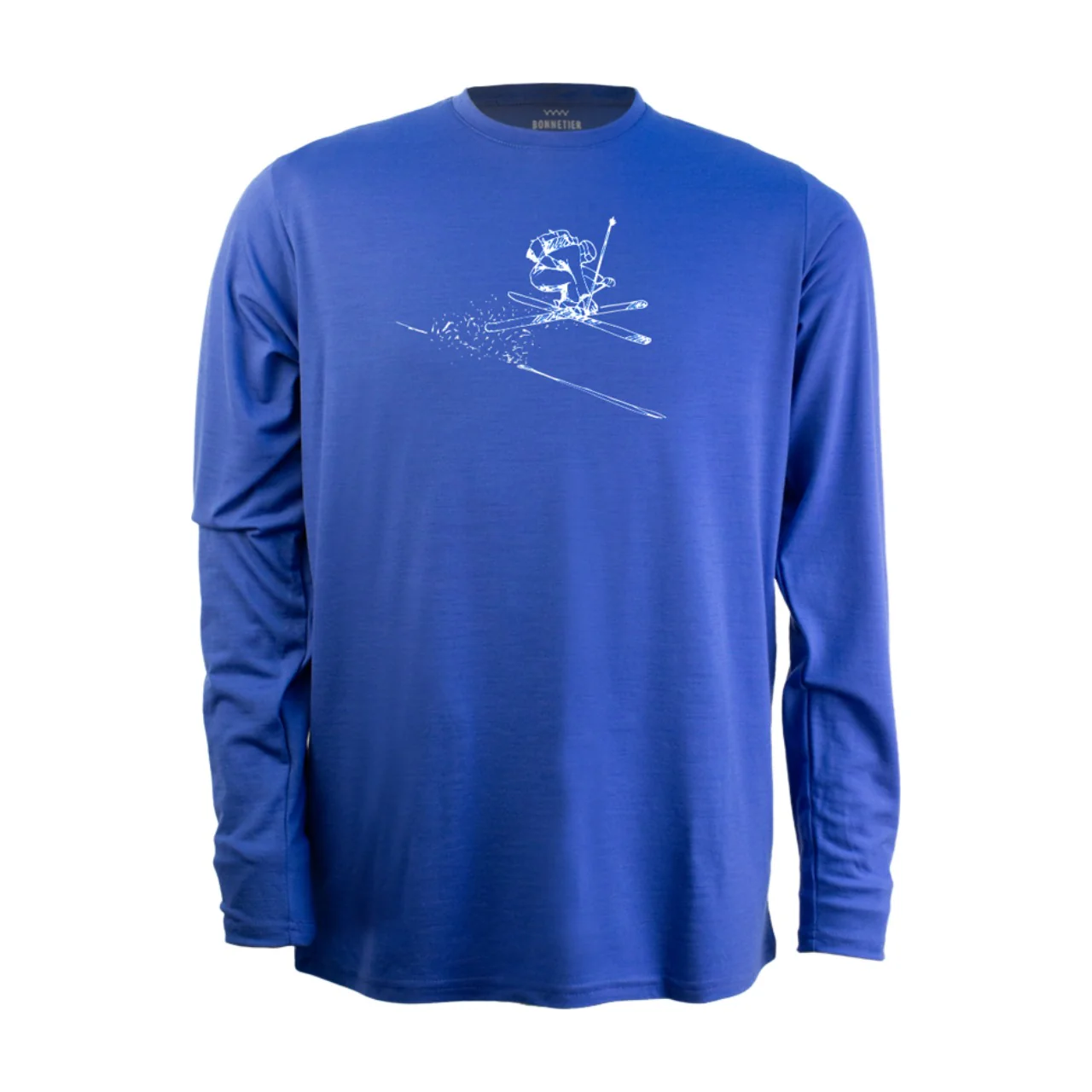 Haut Manches Longues 100% Mérinos Bleu Royal – Imprimé Skieur | Confort, Style et Chaleur Naturelle