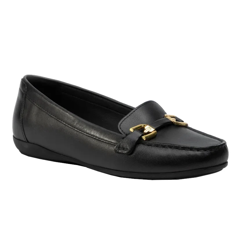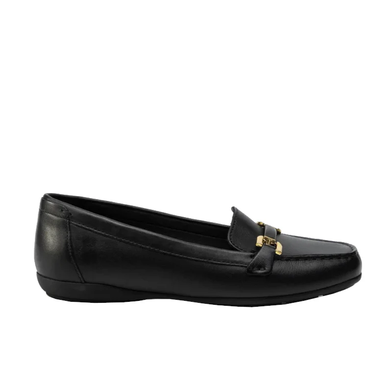 Les mocassins Annytah Moc de Geox, en couleur noir, sont parfaits pour un style décontracté et intemporel. Ces chaussures classiques, fabriquées en cuir lisse noir, sont idéales pour toute occasion, mariant confort et respirabilité. Le design épuré de la tige est sublimé par un élégant détail métallique, ajoutant une touche de raffinement. Ces mocassins offrent un amorti optimal, protégeant et absorbant les impacts lors de la marche. Leur conception sans fermeture assure un enfilage facile et rapide, tandis que leur légèreté garantit un confort prolongé tout au long de la journée. La technologie Respira™ de Geox favorise une excellente circulation de l’air, assurant bien-être et protection à chaque pas.