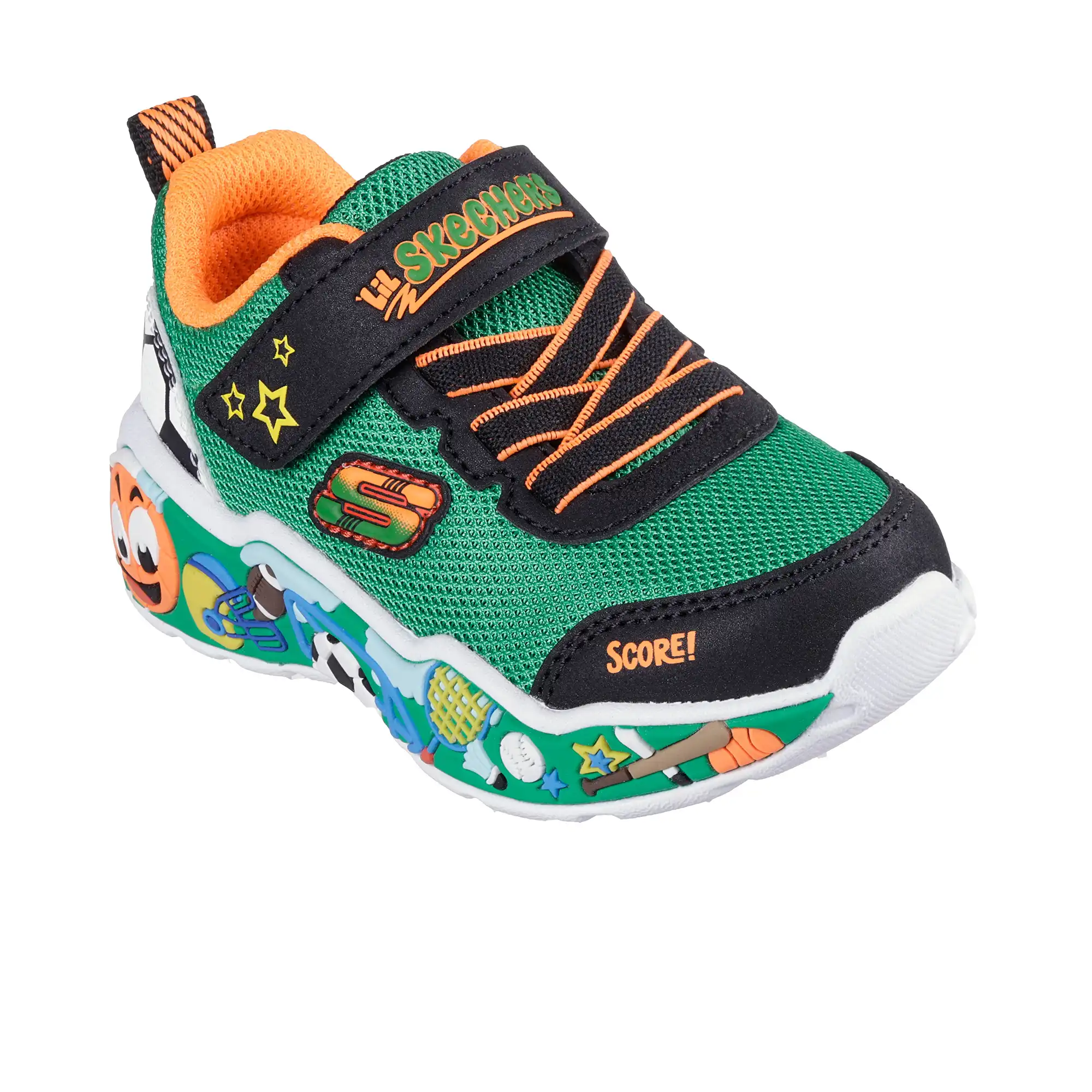 Vos petits s’amuseront confortablement avec la Skechers Play Scene. Ce modèle à thème facile à porter est doté d’une tige en maille et en synthétique, de lacets extensibles, d’une sangle de cambrure ajustable et d’une semelle intermédiaire amusante ornée de graphiques à thème.