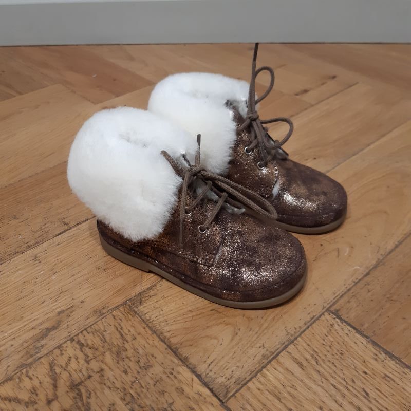 Fan fan fur, idéal pour le plein hiver , modéle premier pas souple et confortable . Doublé mouton véritable.