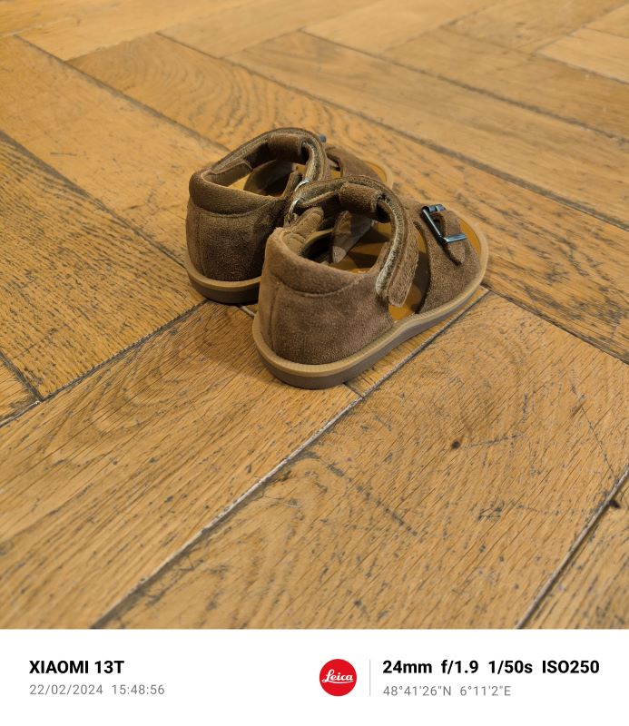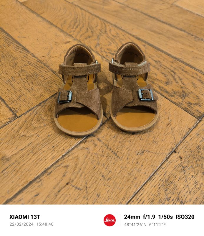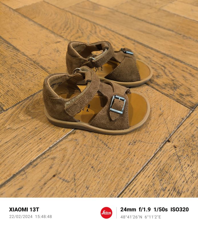 Petit nu pied premier pas de chez pom d’ api, gamme poppy . Modéle qui chausse tous types de pieds . L’ avant de la chaussure est reglable par boucle . Forme idéale pour les premiers pas et les suivants, contrefort arrière semelle souple et peu épaisse sur l’ avant . Serrage par velcro . Patte salomé pour un maintien renforcé. Cuir VELOURS tres doux souple…..et la couleur ….parfaite