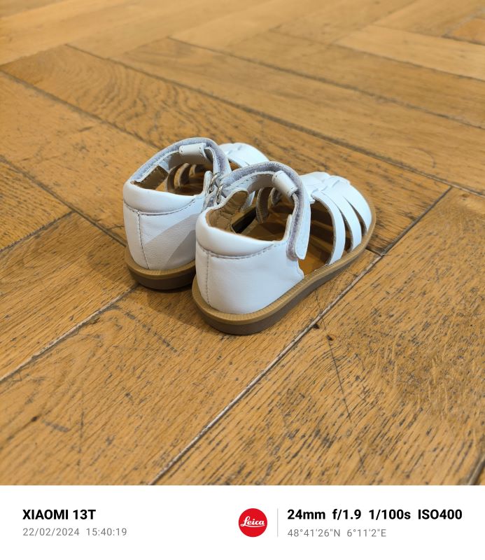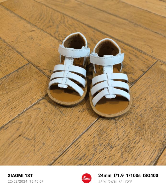 POPPY STRAP . modéle de sandale pour petites filles , devenu un classique de la marque . Facile à mettre, léger confortable et intemporel On adore ce coloris blanc franchement réussi et indémodable ! Chausse normalement . Convient aux pieds « normaux » et un peu ronds.