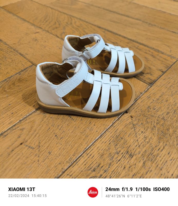 Petit nu pied premier pas de chez pom d’ api, gamme poppy . Modéle qui a un trés bon chaussant. . Forme idéale pour les premiers pas et les suivants, contrefort arrière, pour un bon maintien semelle souple et peu épaisse sur l’ avant . Se ferme par un velcro sur tout l’ avant de la cheville .