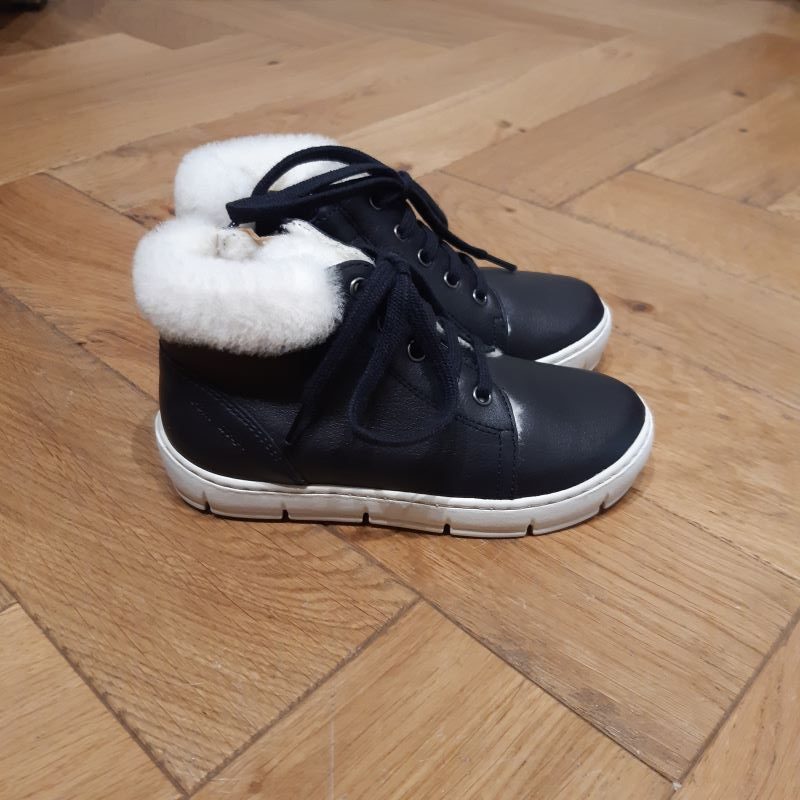 il s’agit d’une chaussure montante toute en cuir ,la semelle est souple et la structure de ce modèle en fait un produit idéal pour les petits garçons aux pieds fins à normaux. Entierement fourrée en laine de mouton