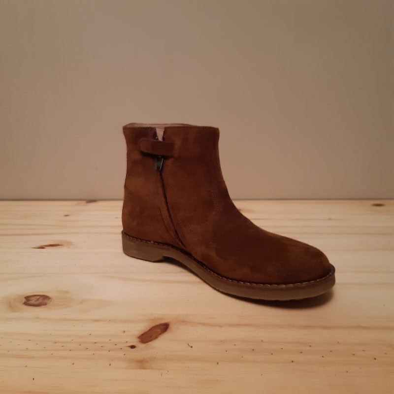 Trip boots est en croute de cuir velours huilé couleur coffee ,soit un camel trés soutenu.sa tige est de hauteur moyenne ,