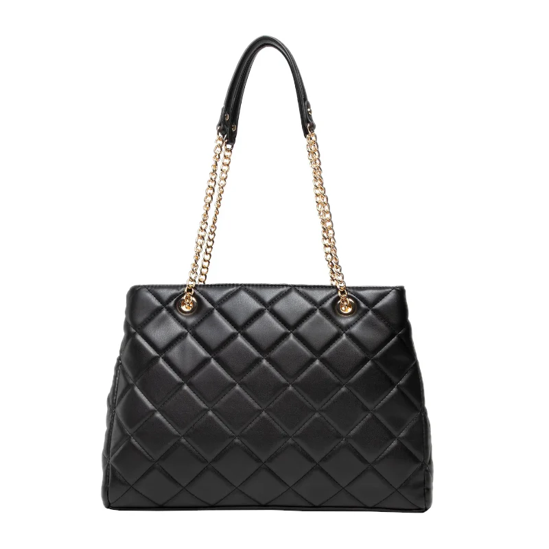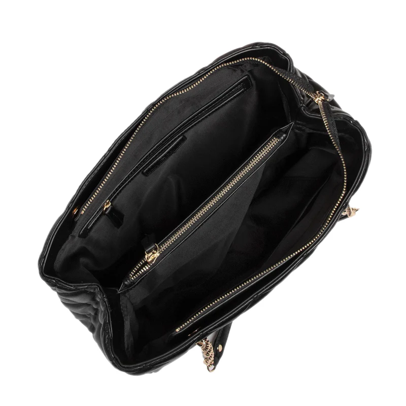 Le sac cabas Ada de Valentino, en couleur Noir, est un accessoire élégant et fonctionnel, parfait pour vos journées bien remplies. Confectionné en matériau synthétique matelassé de haute qualité, il combine style et durabilité. Son design spacieux et ses ferrures en métal doré poli ajoutent une touche sophistiquée à votre allure. Doté de deux anses confortables (anse flèche de 27 cm), il peut être porté à la main ou à l’épaule selon vos préférences. Sa fermeture zippée sécurise efficacement vos effets personnels. L’intérieur bien organisé dispose d’un compartiment principal, d’une séparation zippée et de plusieurs poches pour une organisation optimale. Ce modèle polyvalent et raffiné est idéal pour un usage quotidien.