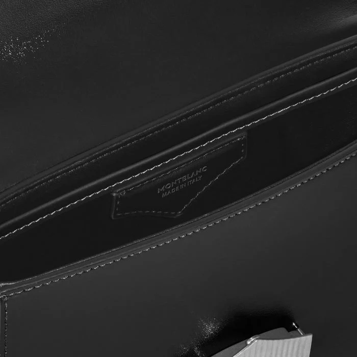 Découvrez le nouveau sac Reporter mini format Meisterstück, fabriqué en cuir noir. Cette pièce élégante est dotée d’une bandoulière en cuir réglable qui permet de la porter confortablement à l’épaule, tandis que le compartiment principal spacieux est facilement accessible en ouvrant le rabat avant. Embossée d’une silhouette montagneuse et couronnée du logo de la Maison, une fermeture métallique distinctive inspirée des pics du Mont-Blanc ajoute une touche sophistiquée aux tenues de tous les jours et des occasions spéciales.