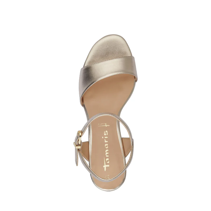 Les sandales à talon Tamaris combinent élégance et confort pour sublimer vos tenues estivales. De couleur light gold, elles se distinguent par leur finition en cuir synthétique lisse, apportant une touche raffinée et brillante. Leur design épuré est accentué par une bride réglable à boucle, permettant un ajustement parfait au pied. La technologie Touch-it Soft garantit un confort optimal grâce à sa semelle intérieure rembourrée qui s’adapte à la forme du pied. Avec leur talon de 7,5 cm, elles allongent la silhouette tout en restant agréables à porter. 100 % vegan et certifiées par le PFI, elles sont conçues sans matériaux d’origine animale tout en conservant un style sophistiqué. Leur semelle extérieure en matière synthétique antidérapante assure une stabilité idéale à chaque pas.