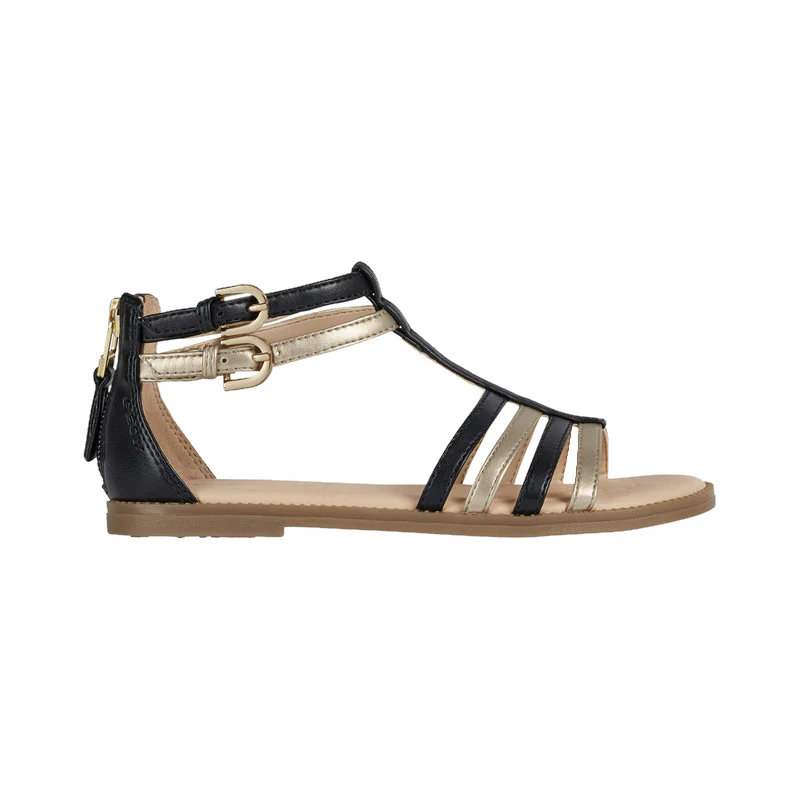 Les sandales Karly de Geox pour filles allient confort et une touche fashion irrésistible. Avec leurs bandes élégantes noires et couleur platine, ces sandales capturent l’essence du chic féminin moderne et plairont aux jeunes filles conscientes de leur style. Réalisées en matière à effet cuir et cuir nacré, elles offrent à la fois durabilité et un charme captivant.