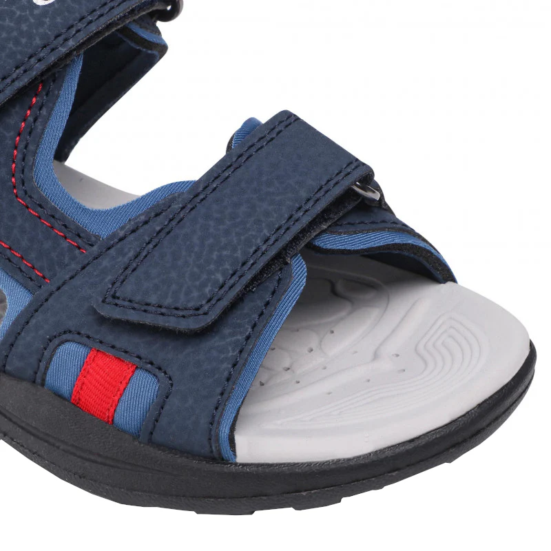 La doublure en textile augmente la sensation de confort contre la peau, tandis que la semelle intérieure synthétique fournit un soutien adapté pour une marche agréable. La semelle extérieure synthétique garantit une bonne adhérence, essentielle pour maintenir une démarche sûre et stable. Ces sandales intègrent la technologie Geox Respira, un système avancé qui permet aux pieds de respirer, ce qui en fait le choix idéal pour les activités extérieures en été.