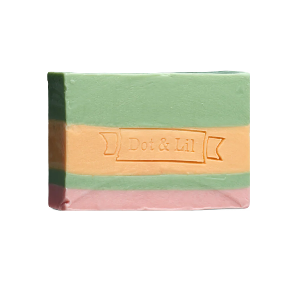 Les savons Dot & Lil sont finement élaborés à partir d’une base d’huiles végétales et de glycérine et d’une formule sans huile de palme. Ils moussent abondamment et durent longtemps. Chaque parfum est fabriqué avec un motif coloré différent, puis estampillé et emballé avec une étiquette à motifs.