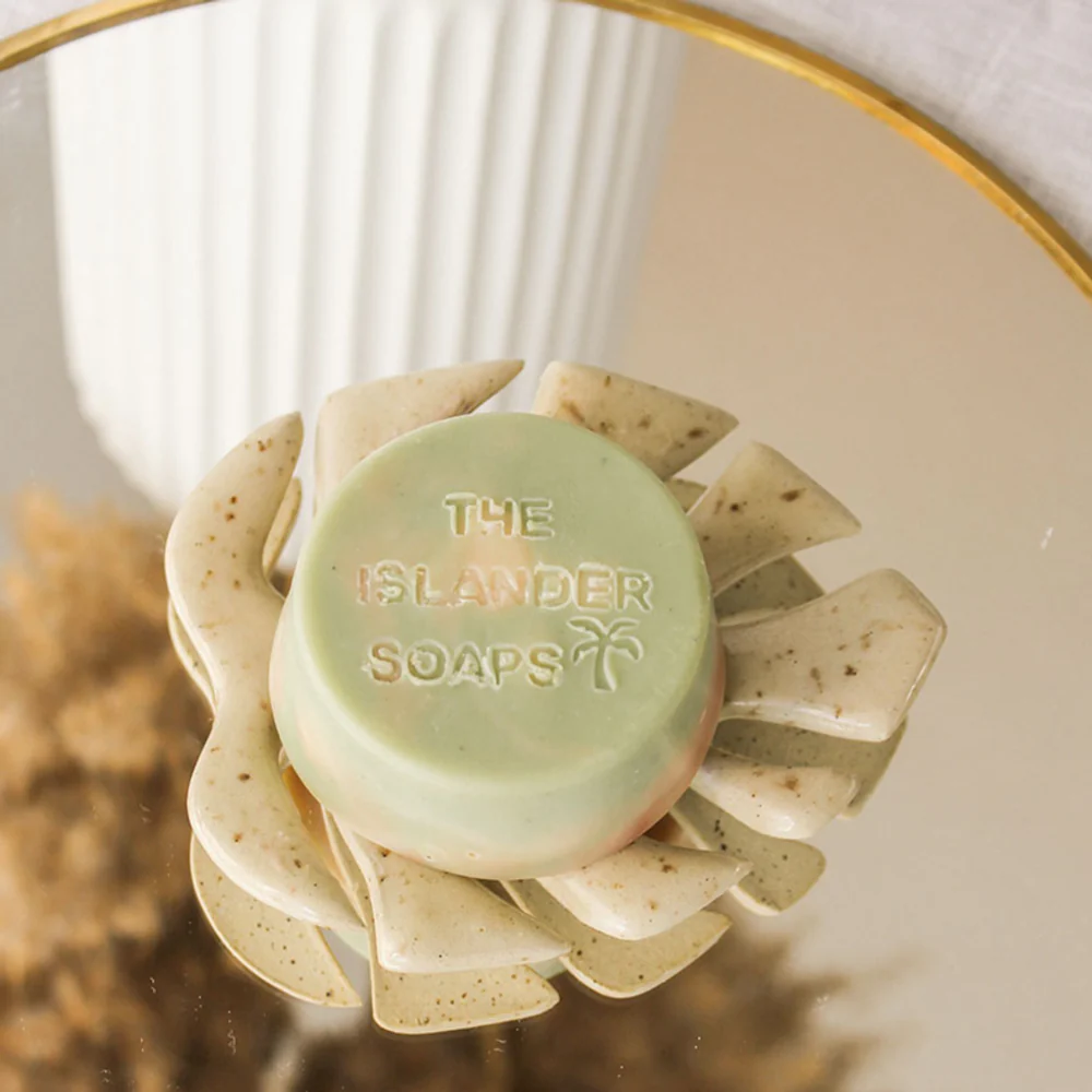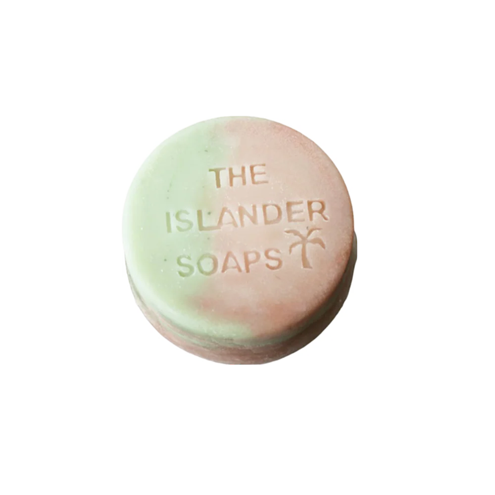 Ingrédients : Huile de noix de coco et fleurs tiare, beurre de karité, huile d’olive vierge, huile de ricin, hydroxyde de sodium, eau, fragrance sans parabènes et phtalates, oxyde verte, argile rose.