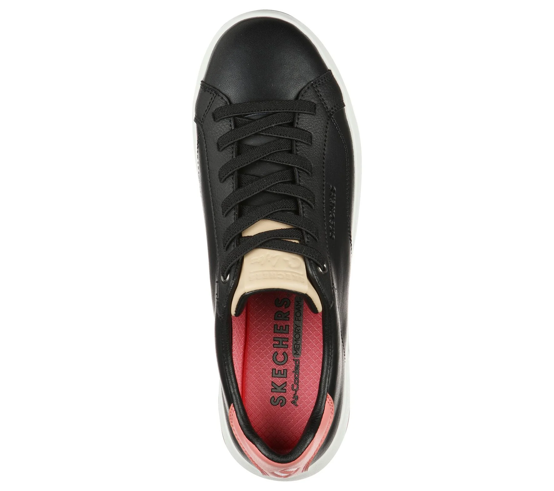 Un look épuré et classique ajoute une touche de couleur parfaite à la chaussure SKECHER Street C-Lites – Blocked Party. Tige en cuir lisse dans une sneaker de mode décontractée à lacets sur le devant avec surpiqûres et accents superposés de couleur. Semelle intérieure en mousse à mémoire de forme refroidie par air.