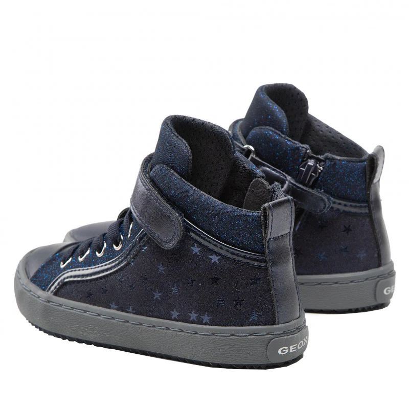 Les sneakers J Kalispera de Geox, en teinte navy, offrent un design urbain et moderne parfaitement adapté aux jeunes filles. Ces baskets flexibles avec une semelle vulcanisée combinent style et confort, idéales pour un usage quotidien.