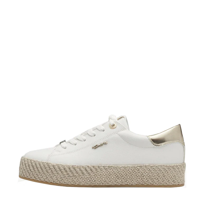 Les sneakers Tamaris offrent une alliance parfaite entre modernité et confort pour un look décontracté et tendance. De couleur blanc et or, elles se distinguent par leur tige en matériau synthétique de haute qualité, garantissant une finition élégante et durable. Leur conception avec un bout rond et un système de laçage assure un ajustement sécurisé et agréable tout au long de la journée. Grâce à leur plateforme de 3,5 cm, ces sneakers offrent un confort optimal sans compromettre la légèreté et la souplesse. 100 % vegan, elles sont certifiées sans matériaux d’origine animale et respectent les normes rigoureuses du German Testing and Research Institute (PFI). Leur semelle extérieure synthétique antidérapante garantit une stabilité idéale sur toutes les surfaces. Parfaites pour un usage quotidien, ces sneakers allient style et engagement éthique.