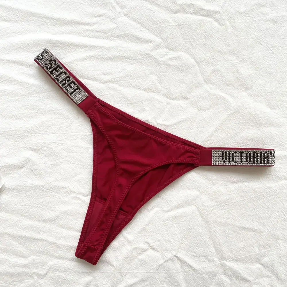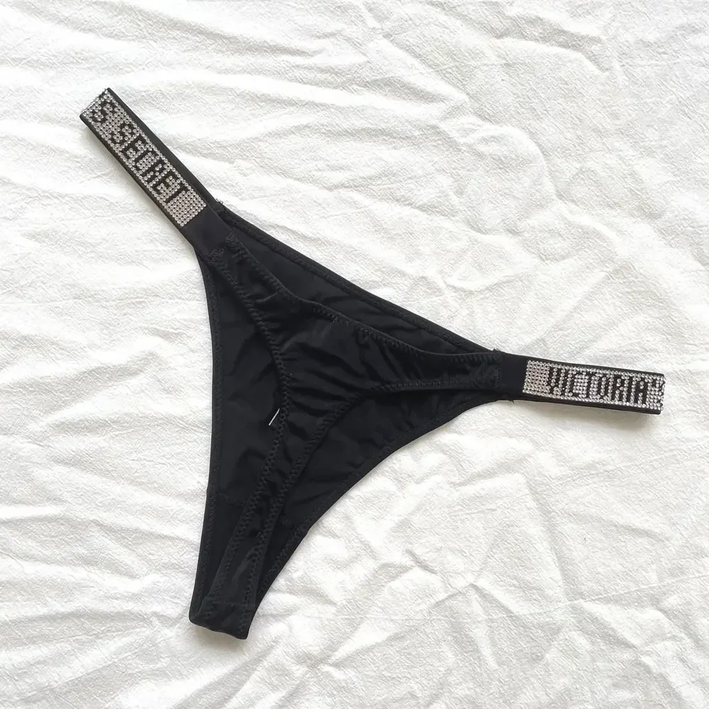 String en satin avec lettre et strass Sexy Lingerie en dentelle Sous-vêtements pour femmes Culottes menstruelles Thong