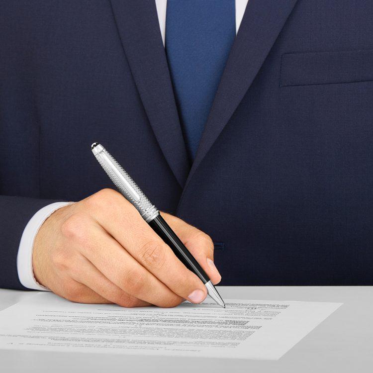 L’instrument d’écriture Meisterstück Solitaire Geometric Dimension est né du désir d’unir un design classique de Montblanc à des matériaux uniques. Cet instrument d’écriture en résine précieuse noire est gravé d’un motif géométrique en trois dimensions dans un ton champagne raffiné et doté d’une agrafe platinée, et de trois anneaux platinés gravés du nom Montblanc. Surmonté de l’emblème Montblanc, il fait appel à l’individualité de chacun.