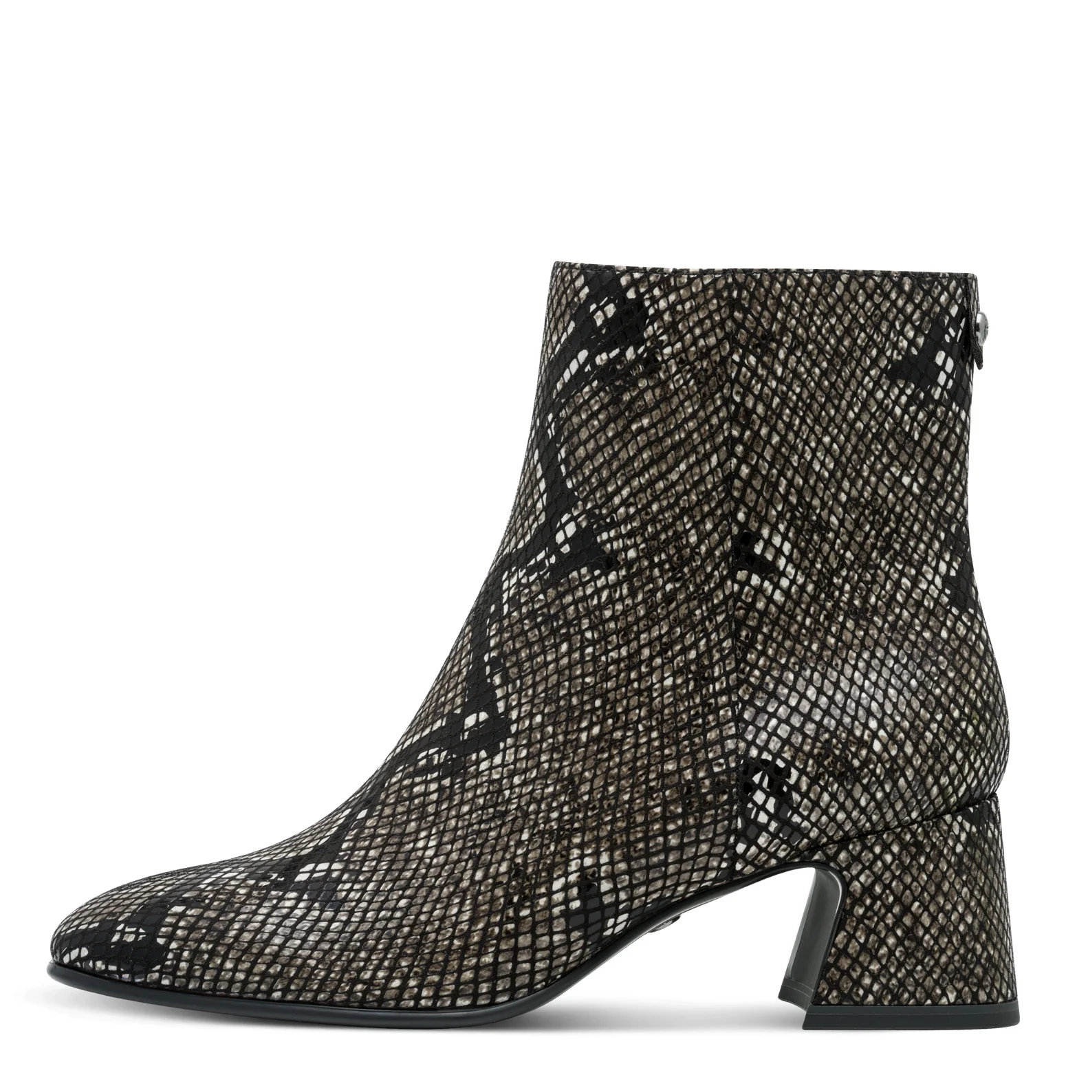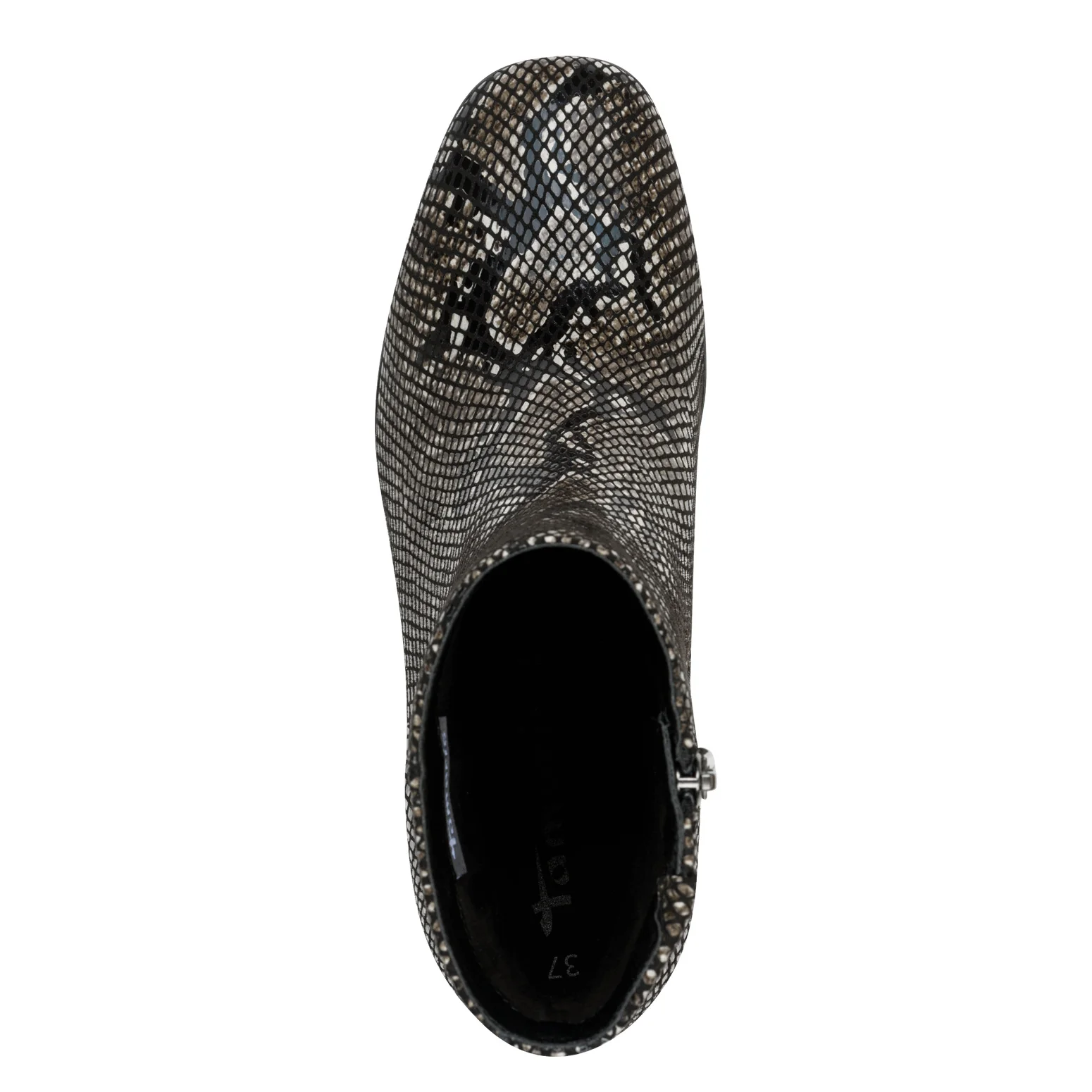 Cette bottine Tamaris en textile allie élégance et confort avec son design noir effet serpent. Son talon de 55 mm offre une hauteur idéale pour sublimer la silhouette tout en assurant une bonne stabilité. Parfaite pour un look sophistiqué au quotidien, elle combine style contemporain et qualité reconnue.